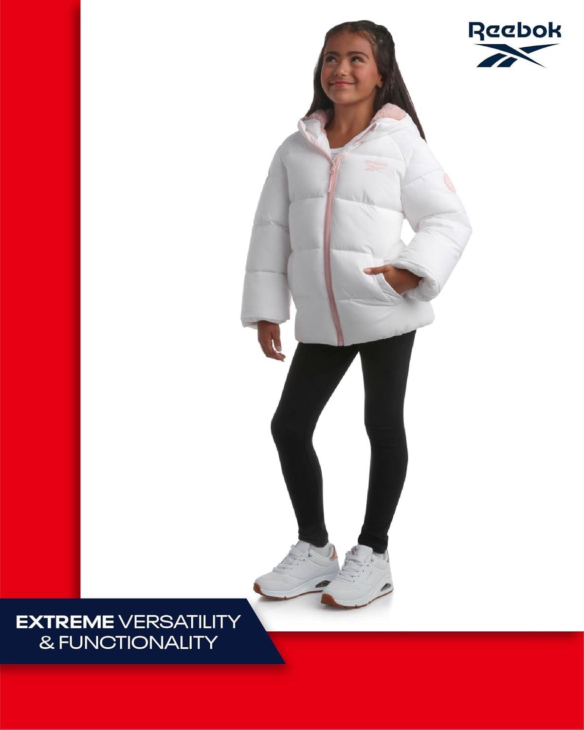 Reebok Girls' Winter Jacket – Heavyweight Quilted Windbreaker Puffer Parka Coat – Faux Fur Lined Ski Jacket for Girls is a great choice for every fashionable girl when the temperature drops. Help her stay comfortable on chilly days with an extra warm and stylish puffer parka coat, designed with fashion and comfort in mind. Featuring deep side pockets to protect her hands from the cold and a cozy faux fur lining for maximum comfort, this stylish outerwear is perfect for school, outdoor activities, or just hanging out with friends. GREAT INSULATION: She will stay on top of winter weather without feeling too bulky, and the wide hood and large collar will make her life so much easier during the unpredictable fall and winter seasons. SOFT AND COZY: Go from chilly to cozy in seconds. This winter jacket is faux fur-lined and adapts perfectly to the weather outside, keeping her warm and stylish every day. DURABLE GIRLS' JACKET: Whether she's playing outside or running errands with family, you won't have to worry about ripping or fading. The durable fabric will last through all her adventures and keep her protected from the elements. WINTER COAT: Our water and wind-resistant winter parka coat for girls provides proper protection against the elements, while the high-quality materials guarantee maximum warmth and comfort throughout the day. EASY TO CLEAN: Simply machine wash and tumble dry; Please refer to the variations for all available sizes & colors! Reebok offers premium clothing at affordable prices because we value every customer who visits our listings! Stop by our storefront to see the rest of our great deals; we're confident you'll find items that anyone in need of a gift will absolutely love and adore!