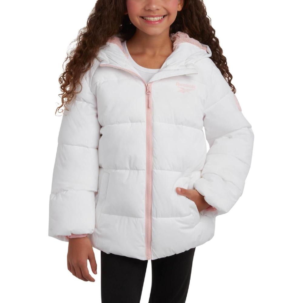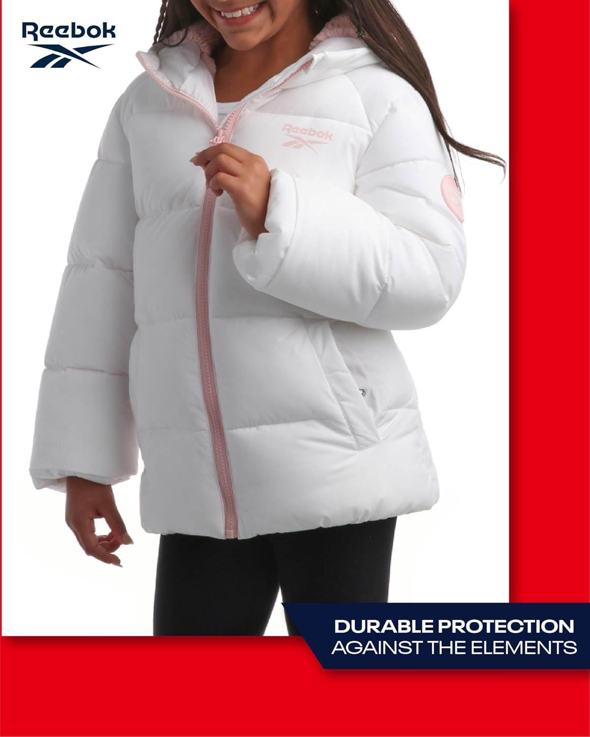 Reebok Girls' Winter Jacket – Heavyweight Quilted Puffer Parka Coat – Sherpa Fleece Lined Ski Jacket for Girls (4-16)(White)