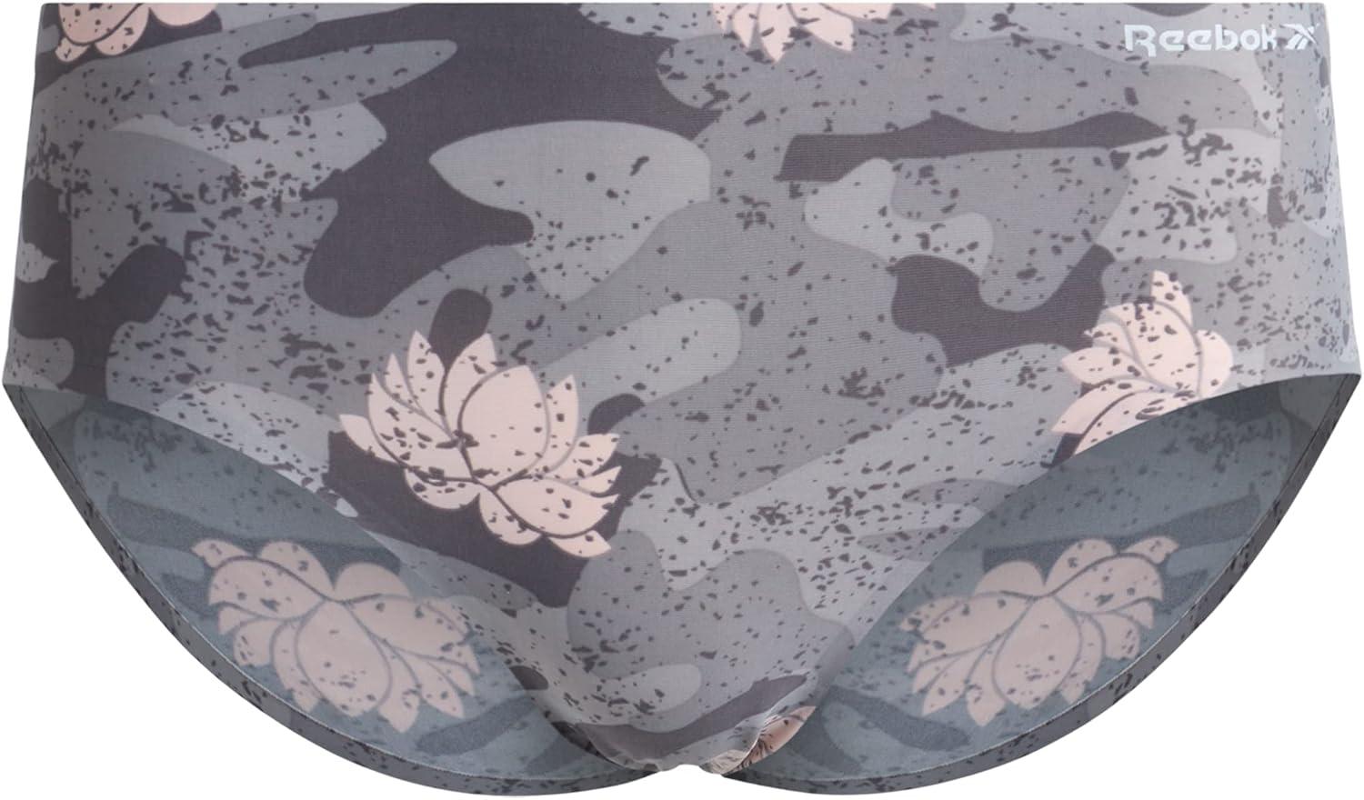 Reebok Hipster Panties for Women – 3 Pack Stretch Performance Seamless Underwear with Relaxed Tagless Waist (S-XL)(Sharkskin/Fox Glove/Black)