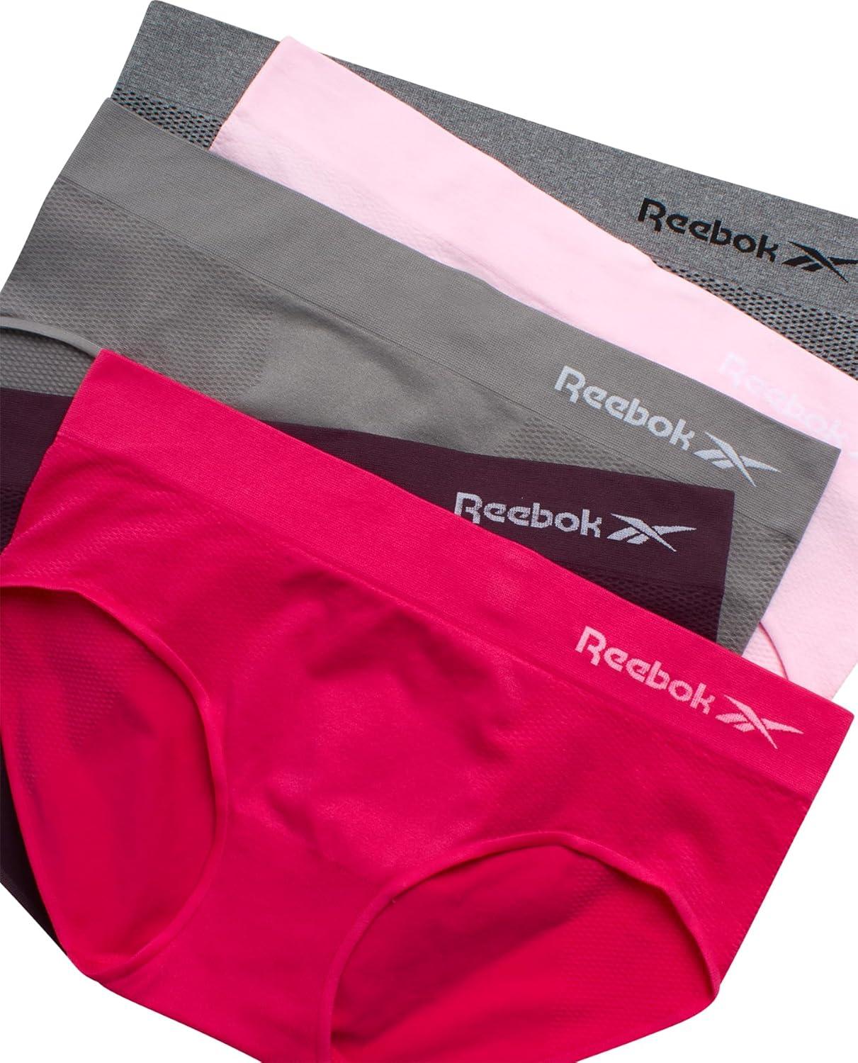 Reebok Hipster Panties for Women – 5 Pack Stretch Performance Seamless Underwear with Relaxed Tagless Waist (S-XL)(Heather Grey/Pink Lady/Sharkskin/Rasberry/Plum)