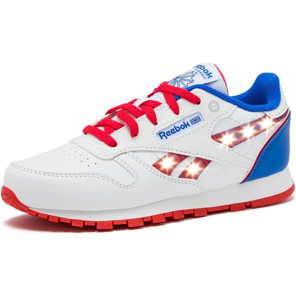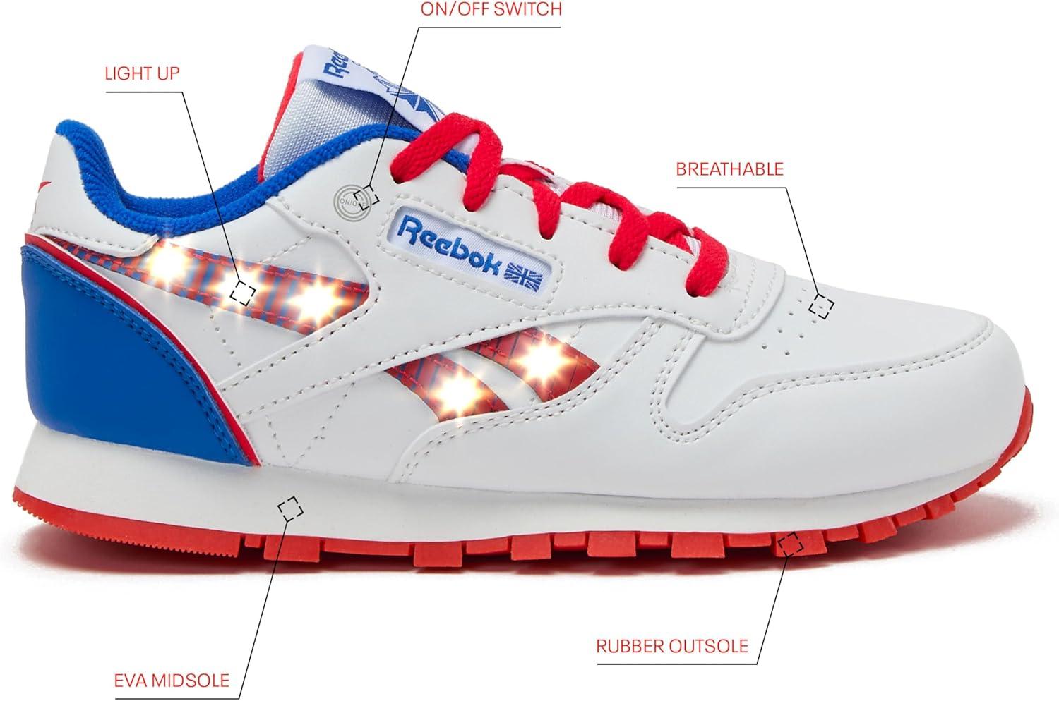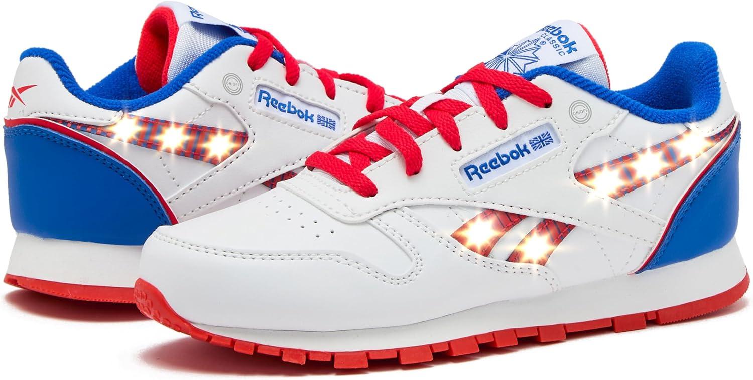Reebok Kid’s Classic Leather Step N’ Flash 2.0 Sneaker(Footwear White/Optimum Blue/Solar Lime)