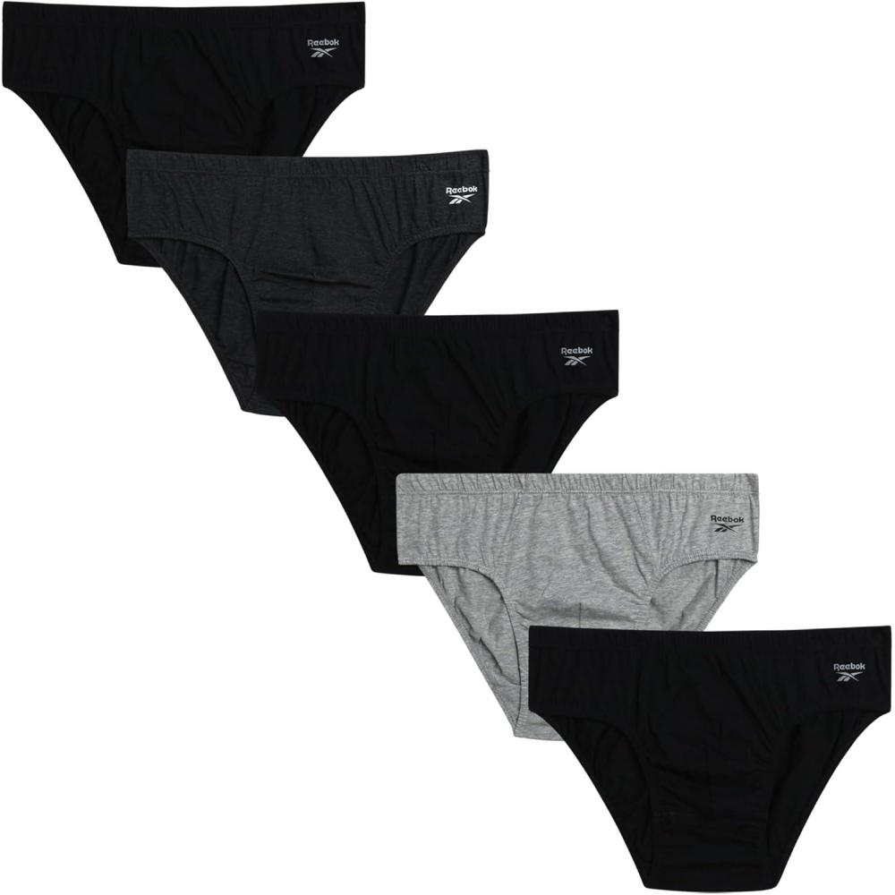 Reebok Low Rise Mens Underwear Briefs – 5 Pack Performance Briefs Cotton Underwear For Men with Contour Pouch (Sizes: S-XL)(Black/Heather Grey/Charcoal Heather)