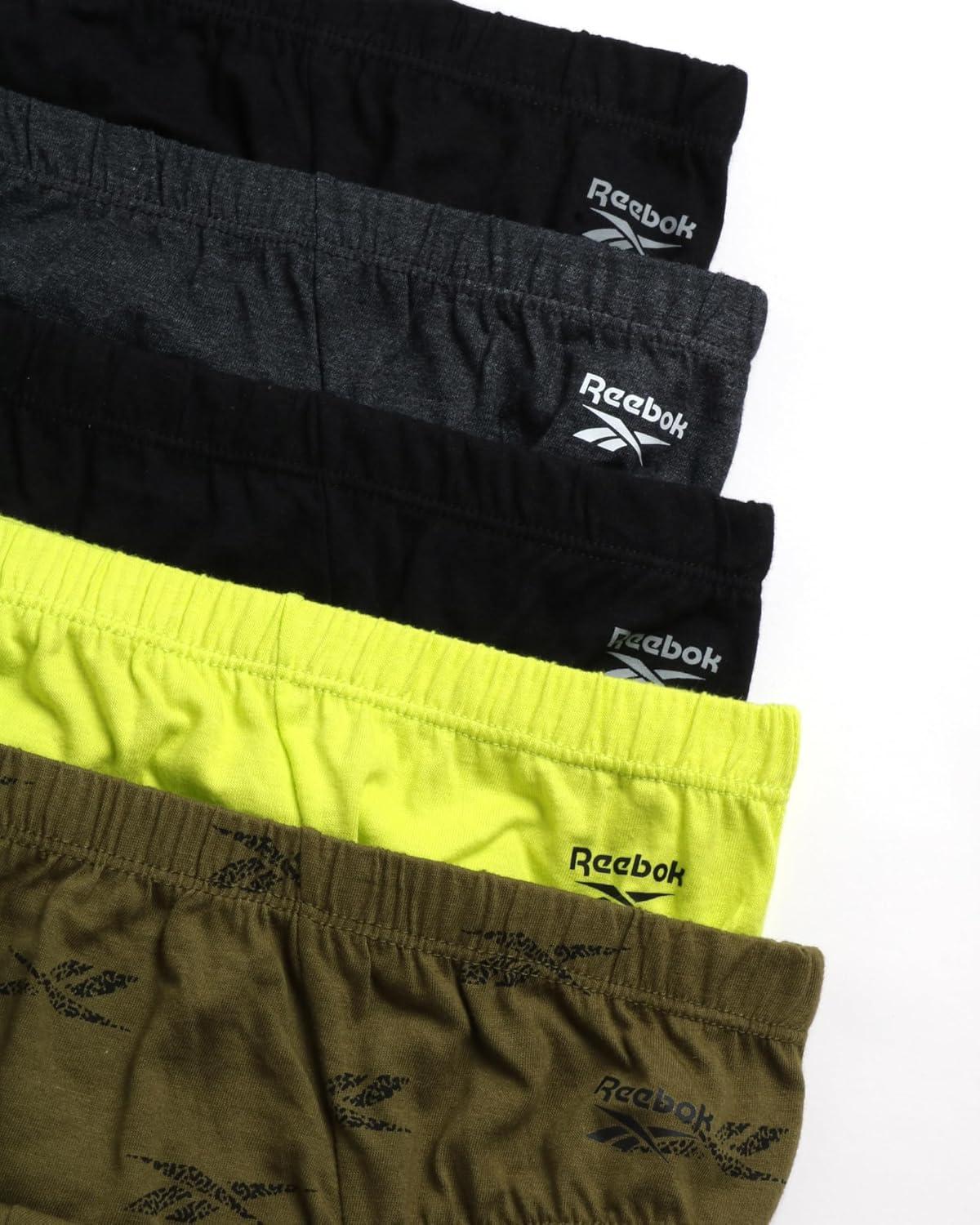 Reebok Low Rise Mens Underwear Briefs - 5 Pack Performance Briefs Cotton Underwear For Men with Contour Pouch (Sizes: S-XL)(Charcoal Heather/Evening Primrose/Print/Black)