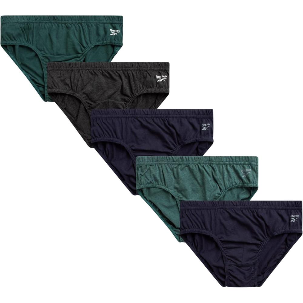imageReebok Low Rise Mens Underwear Briefs  5 Pack Performance Briefs Cotton Underwear For Men with Contour Pouch Sizes SXLDark GreenCharcoalNavy BlueHeather Green