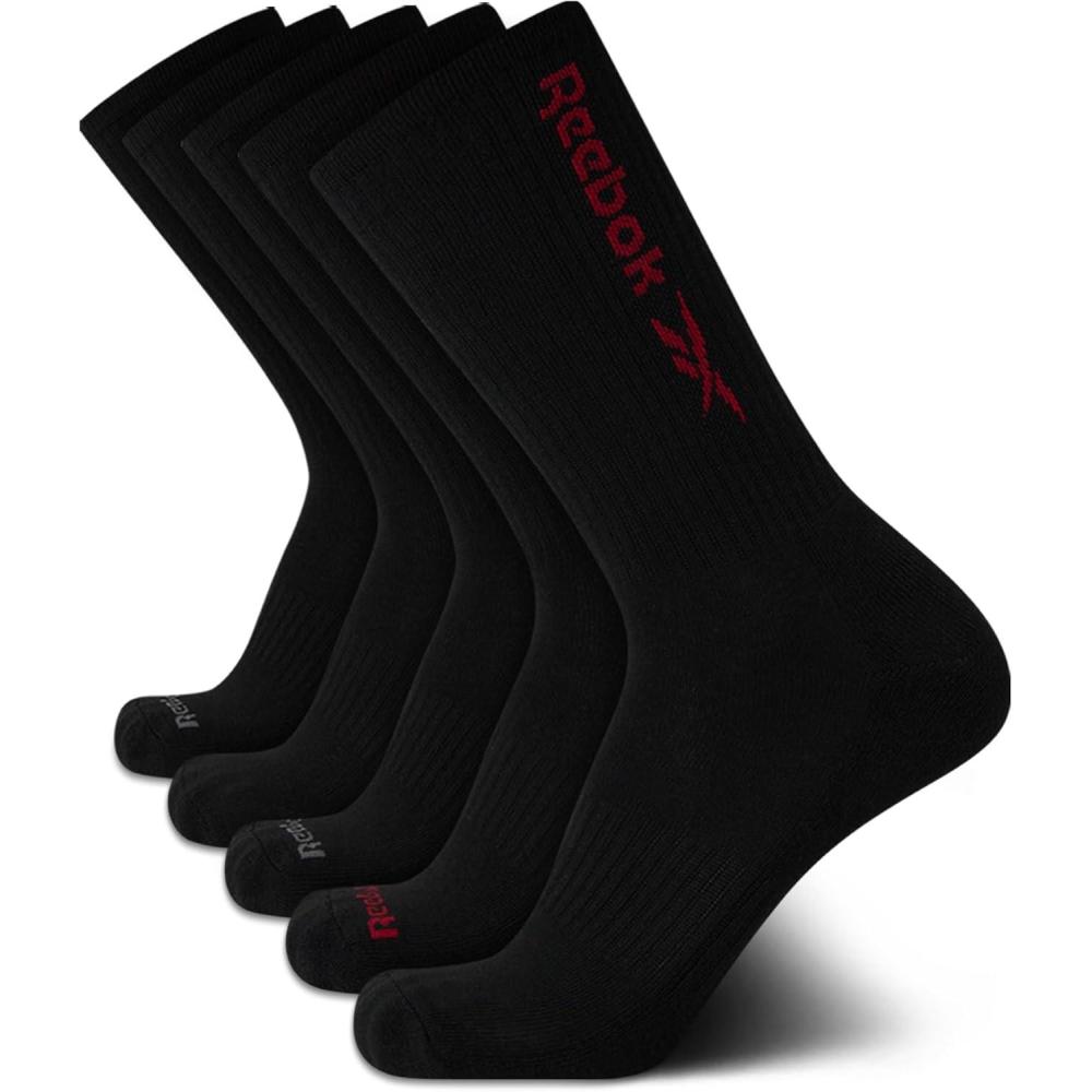 Reebok Mens Athletic Crew Socks - 5 Pack Moisture Wicking Cushioned Athletic Socks for Men with Reinforced Seams (6-12.5)(Black/Red Logo)
