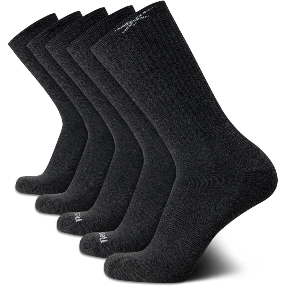 Reebok Mens Athletic Crew Socks – 5 Pack Moisture Wicking Cushioned Athletic Socks for Men with Reinforced Seams (6-12.5)(Classic Grey)