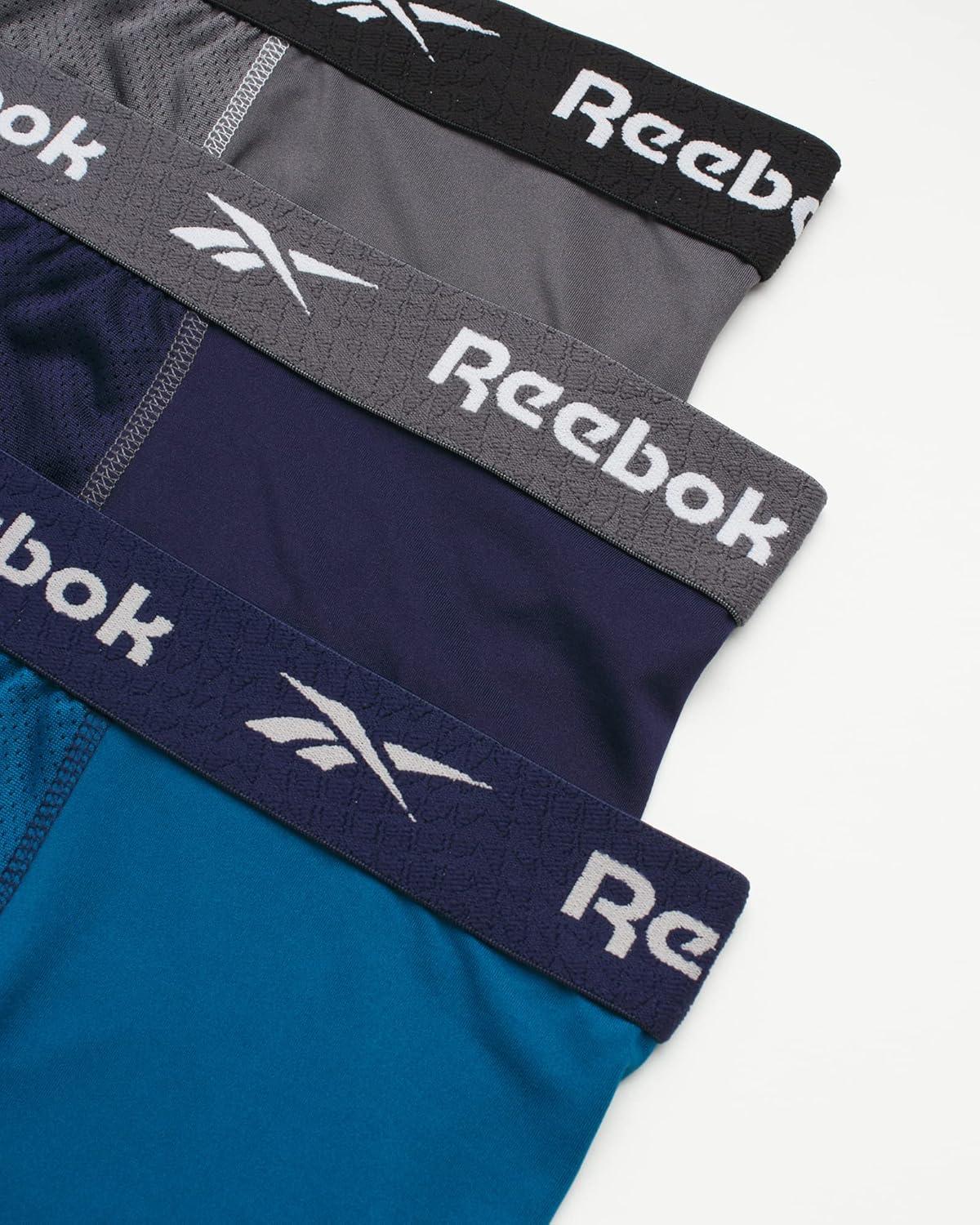 Reebok Mens Boxer Briefs - 3 Pack Stretch Moisture Wicking Mens Underwear with Contour Pouch Boxers for Men (Sizes: S-XL)(Blue/Navy/Grey)