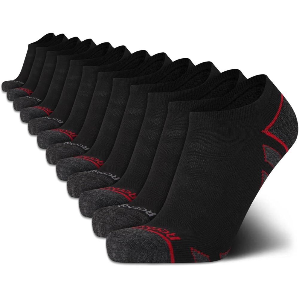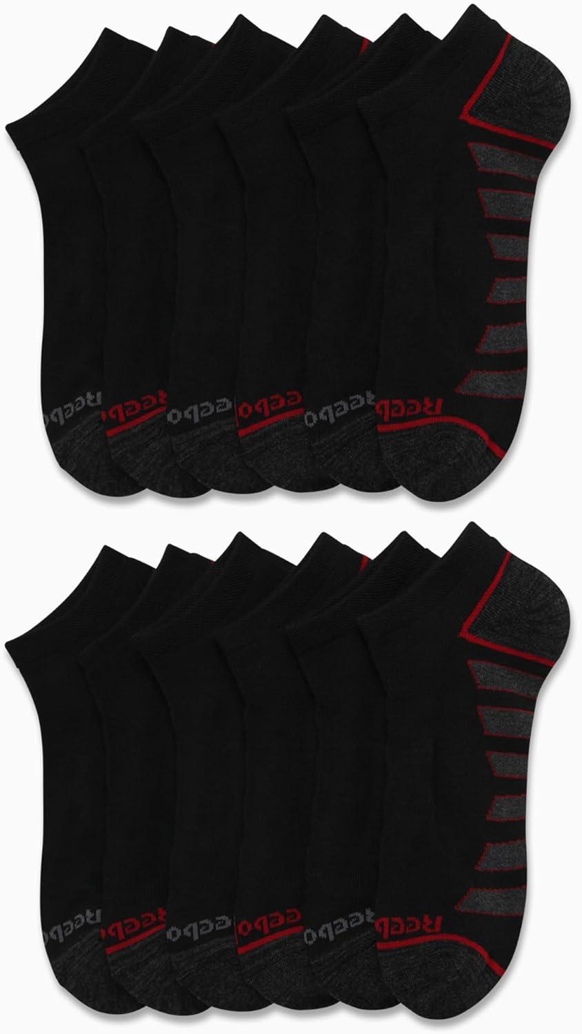 Reebok Mens Low Cut Socks - 12 Pack Performance Cushion Comfort No Show Socks - Breathable Athletic Socks for Men (6-12.5)(Assorted Black)