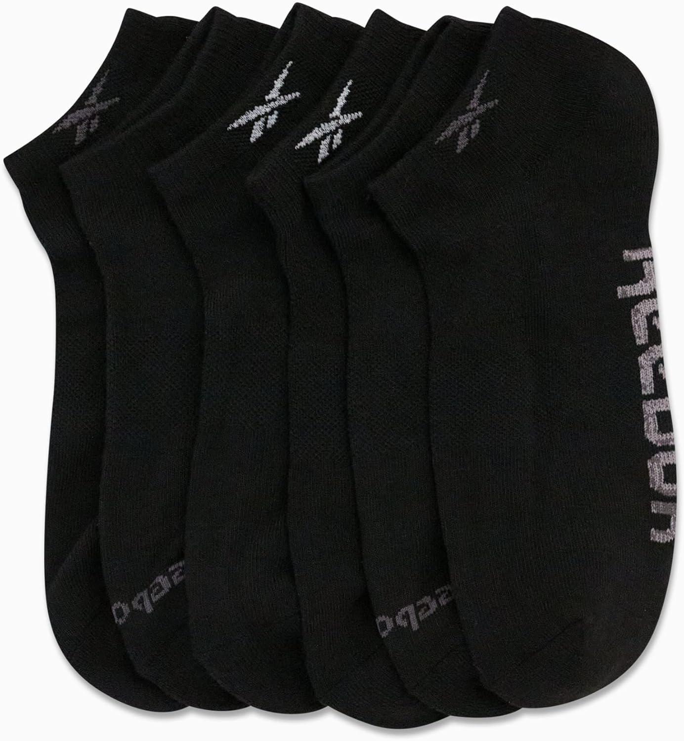 Reebok Men's Athletic Low Cut Basic Socks Designed for performance, these athletic socks deliver comfort and durability whether you're on the court, in the gym, or on the track. The snug fit helps keep the sock in place, while cushioned support offers comfort during active wear. Reinforced Heel and Toe – Built to withstand daily wear and tear, helping reduce friction and extend sock life. Cushion Comfort – Soft padding provides a comfortable feel with every step. Moisture Control – Breathable materials help manage sweat and heat to keep feet cool and dry. Athletic Fit – Smooth construction minimizes bunching and twisting during movement. Easy Care – Machine washable and dryer-friendly for everyday convenience. Authentic Branding – Features the classic Reebok logo.