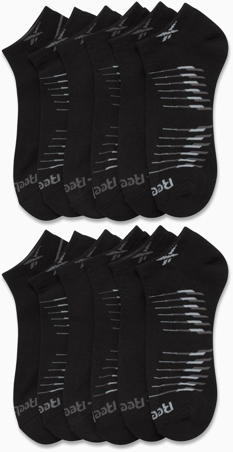 Reebok Mens Low Cut Socks - 12 Pack Performance Cushion Comfort No Show Socks - Breathable Athletic Socks for Men (6-12.5)(Black Stripe)