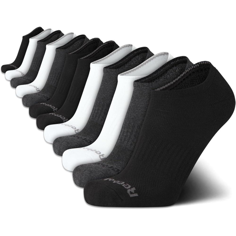 Reebok Mens Low Cut Socks - 12 Pack Performance Cushion Comfort No Show Socks - Breathable Athletic Socks for Men (6-12.5)(Black/White/Grey)