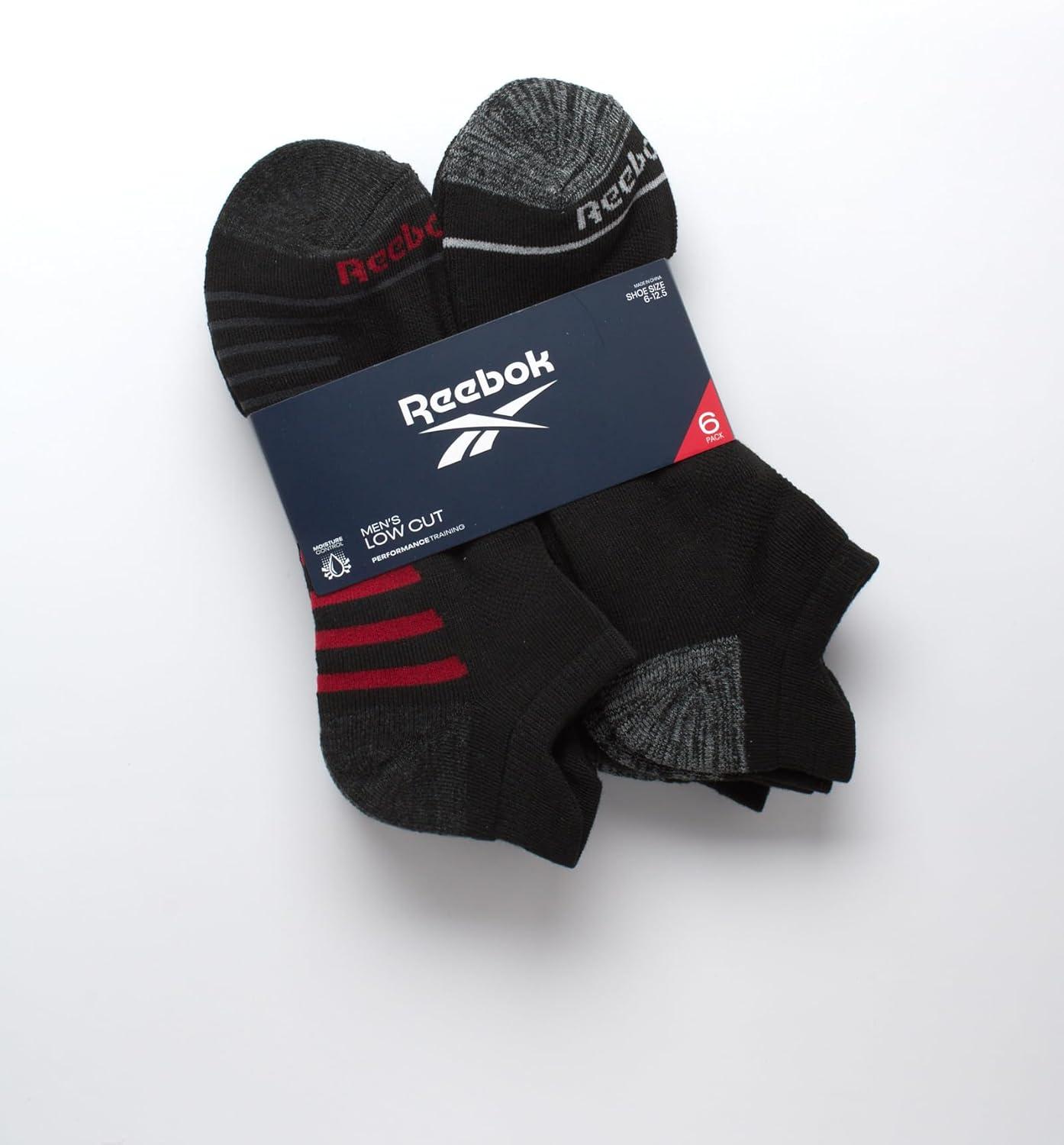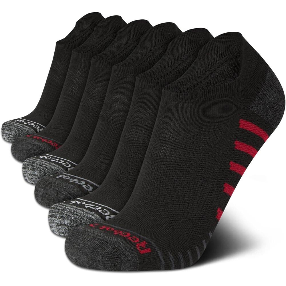 Reebok Mens Low Cut Socks – 6 Pack Basic Cushioned No Show Athletic Socks for Men (Size 6-12.5)(Black Stripe Multi)