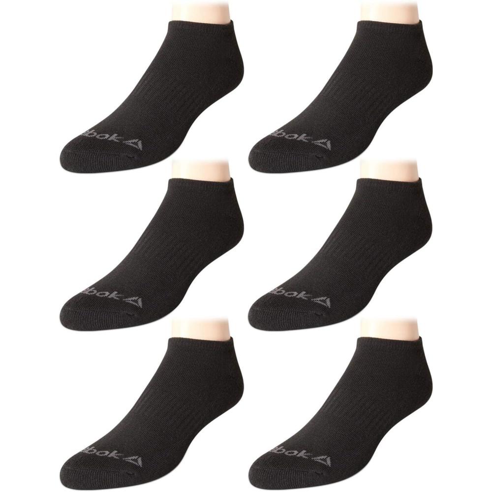 Reebok Mens Low Cut Socks – 6 Pack Basic Cushioned No Show Athletic Socks for Men (Size 6-12.5)(Midnight Black)