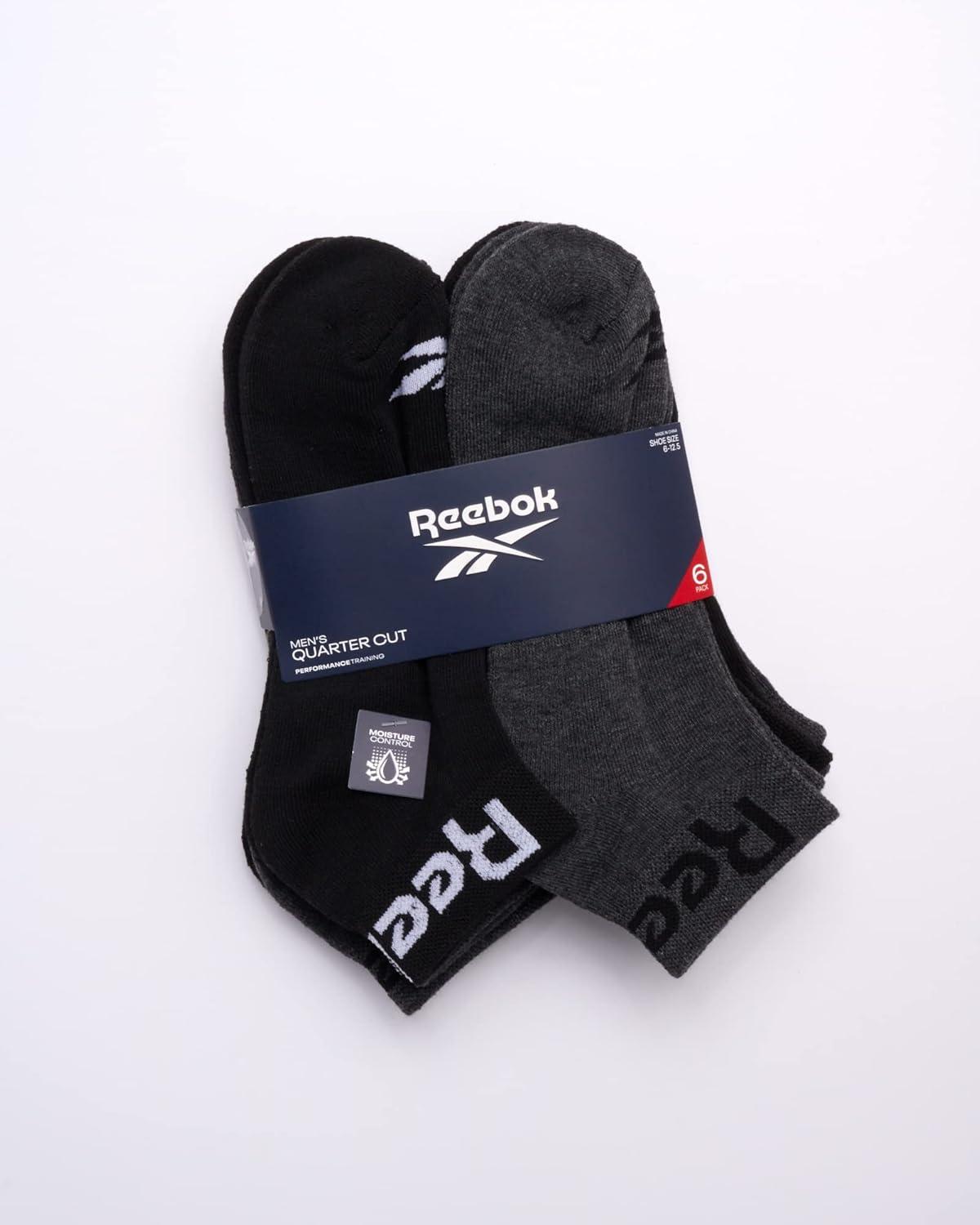 Upgrade your everyday essentials with Reebok Men’s Quarter Socks – the ultimate fusion of performance, comfort, and modern athletic design. These quarter-length socks are built for men who demand more from their gear, whether you're hitting the gym, the court, or the streets. Featuring Reebok’s signature stretch performance construction, these mens socks offer a secure, stay-in-place fit that flexes with every step. Designed with moisture wicking fabric technology, these men's ankle socks pull sweat away from the skin to keep feet dry and cool throughout your most intense workouts or longest days. Whether you're going for a run or powering through weight training, these athletic socks for men deliver breathable comfort and dryness hour after hour. Targeted cushioned socks support key impact zones around the heel and toe, giving you an added layer of protection where it counts. From walking the dog to game day performance, these basketball socks men help reduce fatigue while maximizing shock absorption. And thanks to the comfort cuff and comfort toe seam, you'll never have to worry about rubbing or pressure points again. From daily wear to athletic training, these socks adapt to your pace and style. Whether you're searching for ankle socks white, black athletic socks, grey ankle socks men, quarter length socks, or reliable workout socks, this value 6-pack gives you all-day versatility with a sleek, low-cut profile. No matter how you define performance, trust these mens sport socks, black quarter socks, white socks ankle, mens ankle socks black, and men’s socks & hosiery options to deliver durability and comfort from the ground up. Built for movement. Made for men. This is Reebok performance at its core.