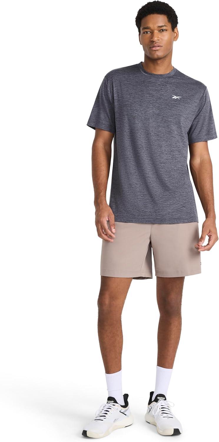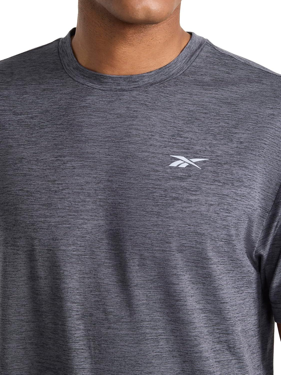 Reebok Men's Strike Short Sleeve Crewneck T-Shirt, Standard Fit, Lightweight Stretch Poly Jersey Fabric(Ebony Heather)
