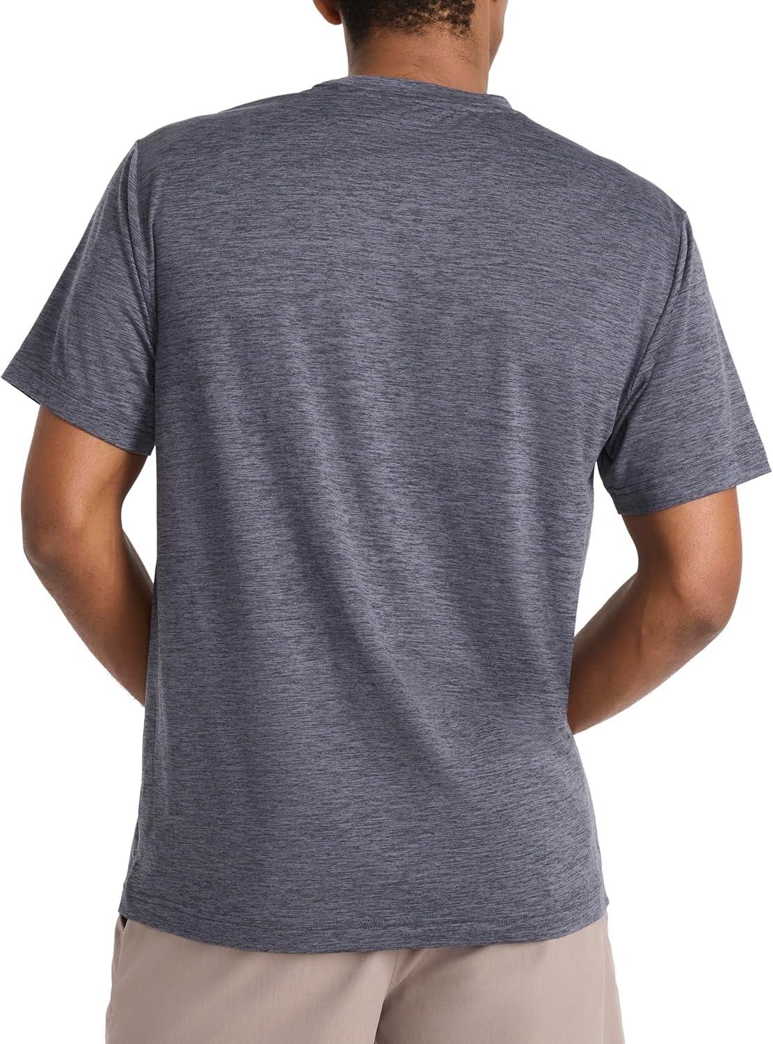 Reebok Men’s Strike Short Sleeve Crewneck T-Shirt, Standard Fit, Lightweight Stretch Poly Jersey Fabric(Ebony Heather)