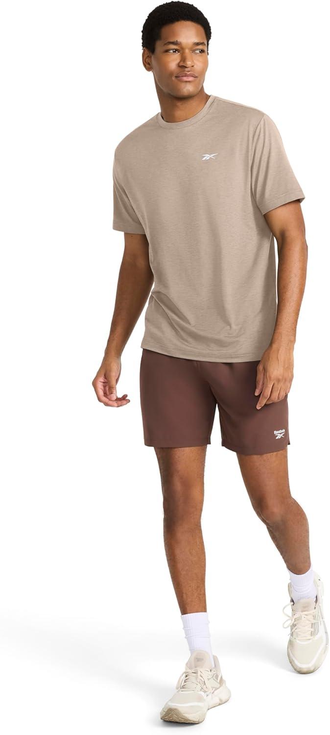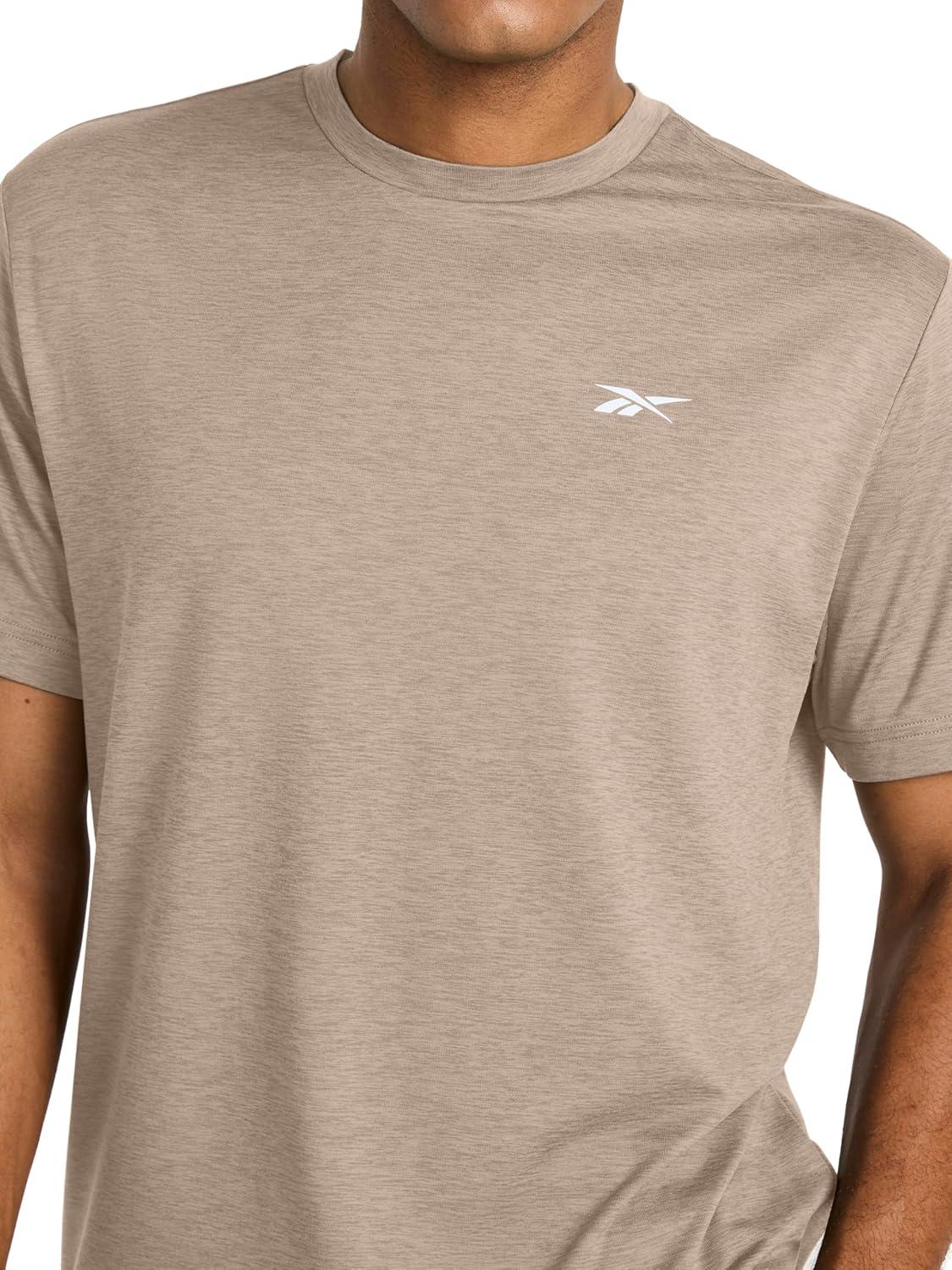 Reebok Men's Strike Short Sleeve Crewneck T-Shirt, Standard Fit, Lightweight Stretch Poly Jersey Fabric(Gritty Grey Heather)