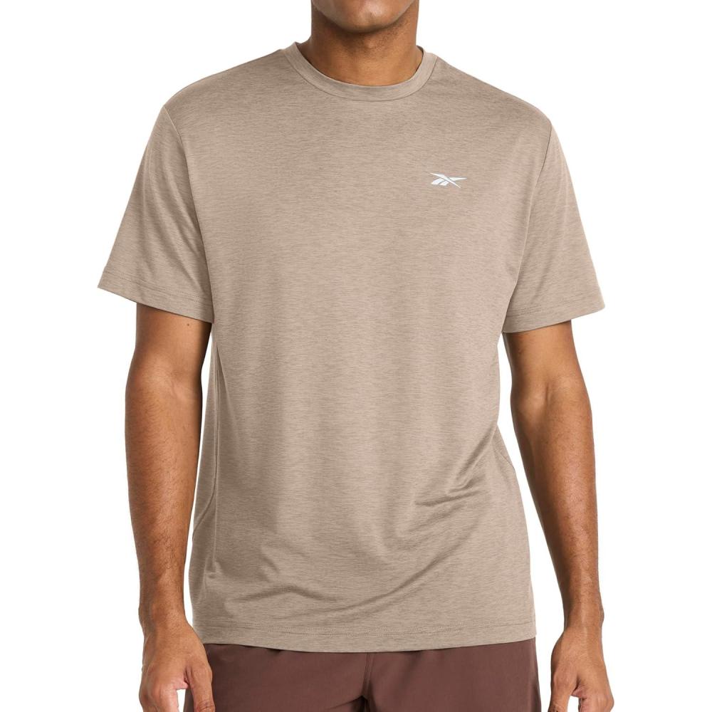 Reebok Men’s Strike Short Sleeve Crewneck T-Shirt, Standard Fit, Lightweight Stretch Poly Jersey Fabric(Ebony Heather)