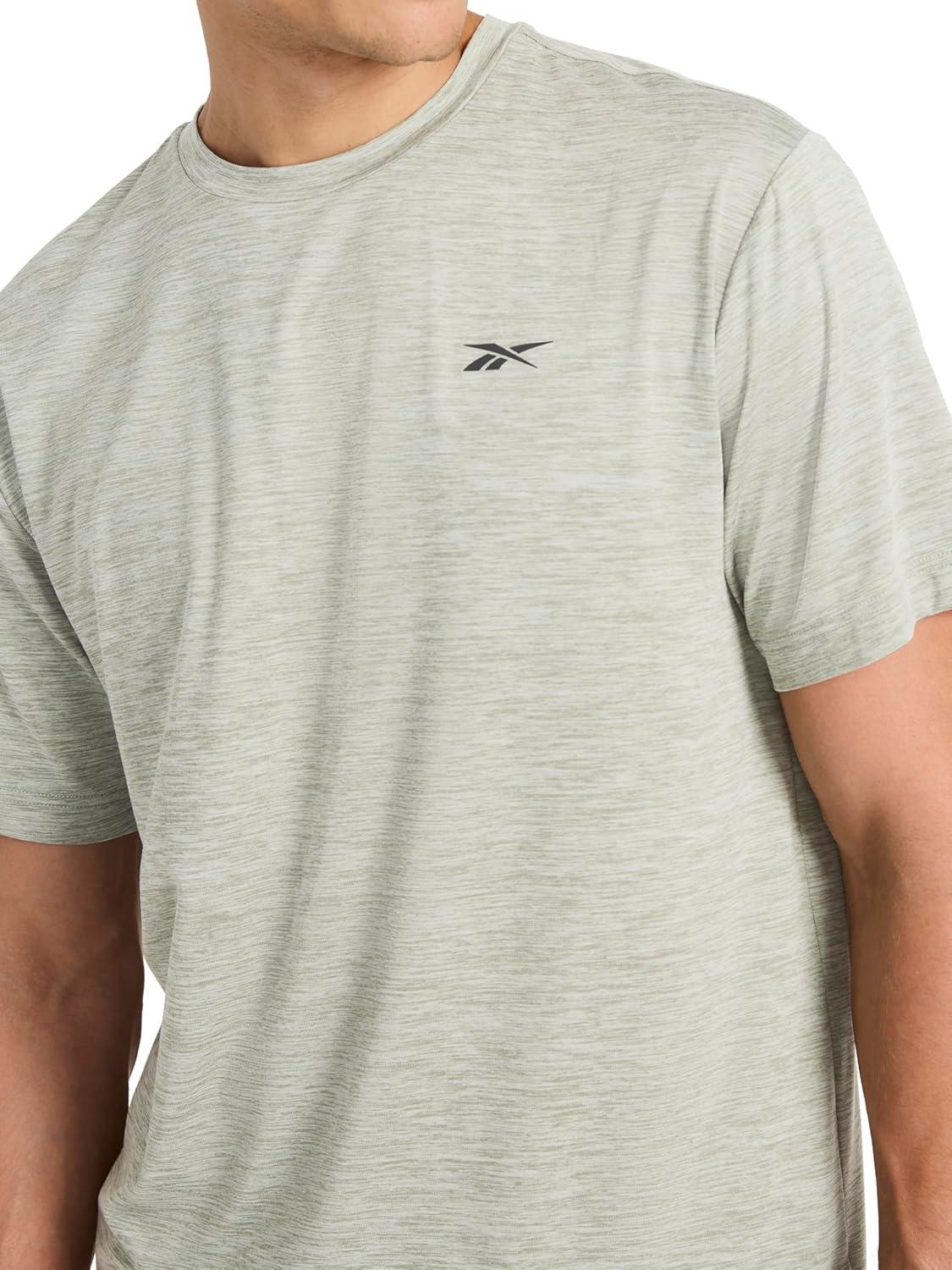 Reebok Men’s Strike Short Sleeve Crewneck T-Shirt, Standard Fit, Lightweight Stretch Poly Jersey Fabric(Iceberg Green Heather)