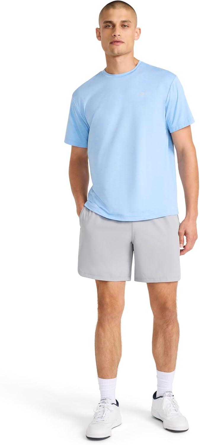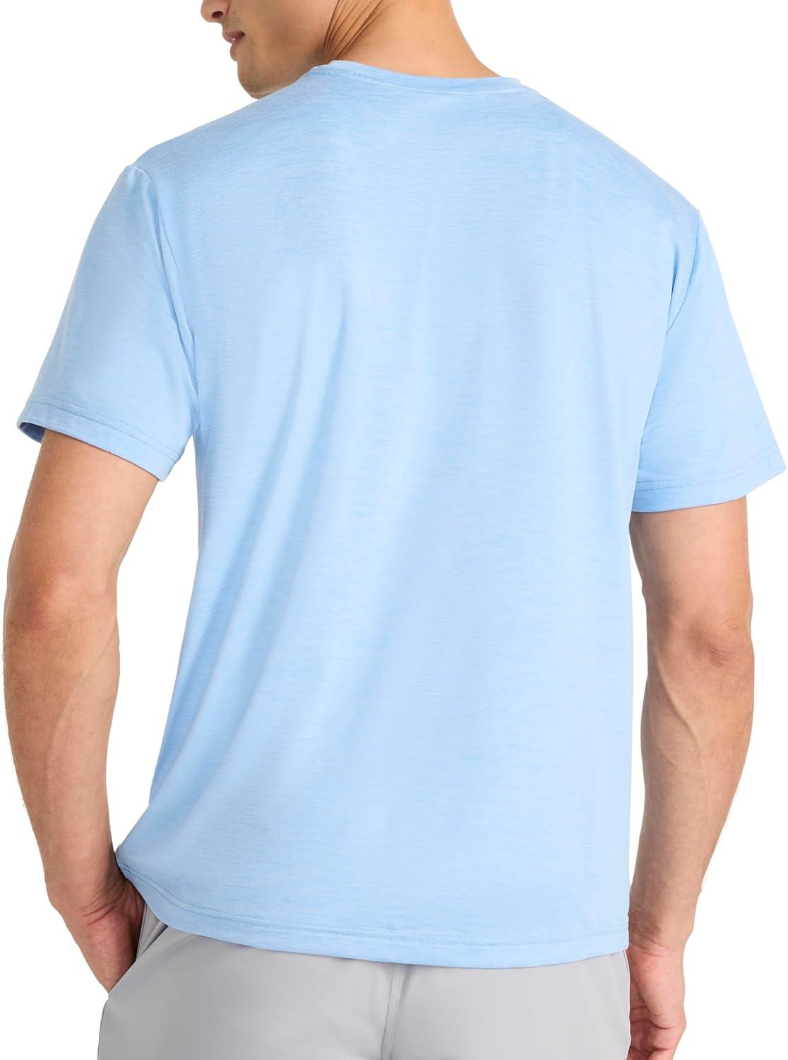Reebok Men’s Strike Short Sleeve Crewneck T-Shirt, Standard Fit, Lightweight Stretch Poly Jersey Fabric(Placid Blue Heather)