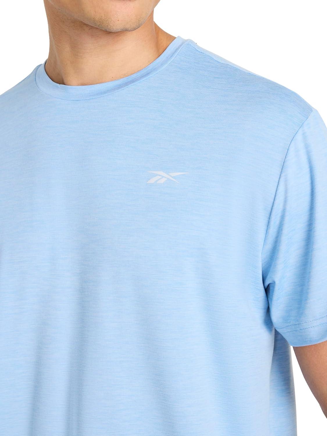 Reebok Men's Strike Short Sleeve Crewneck T-Shirt, Standard Fit, Lightweight Stretch Poly Jersey Fabric(Placid Blue Heather)