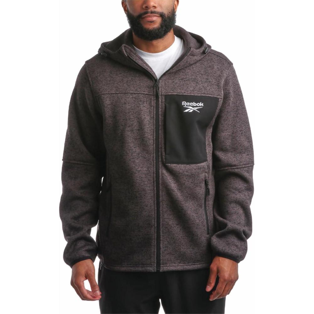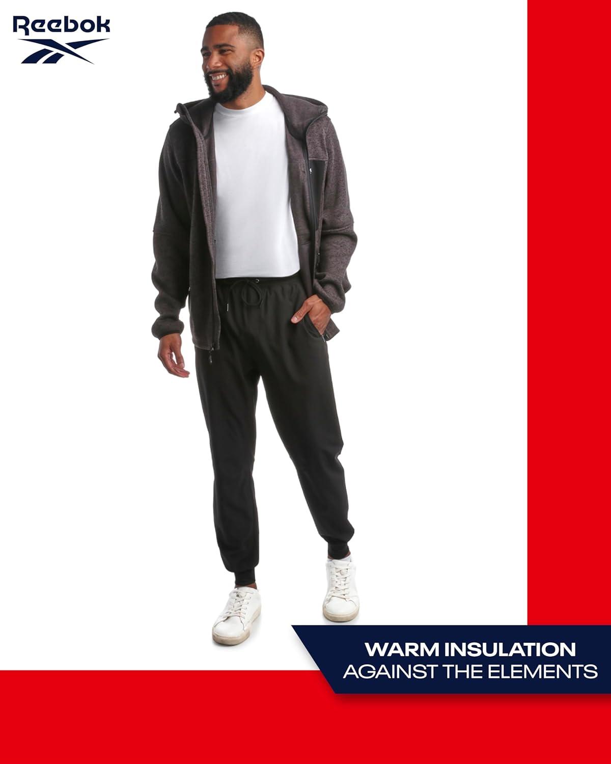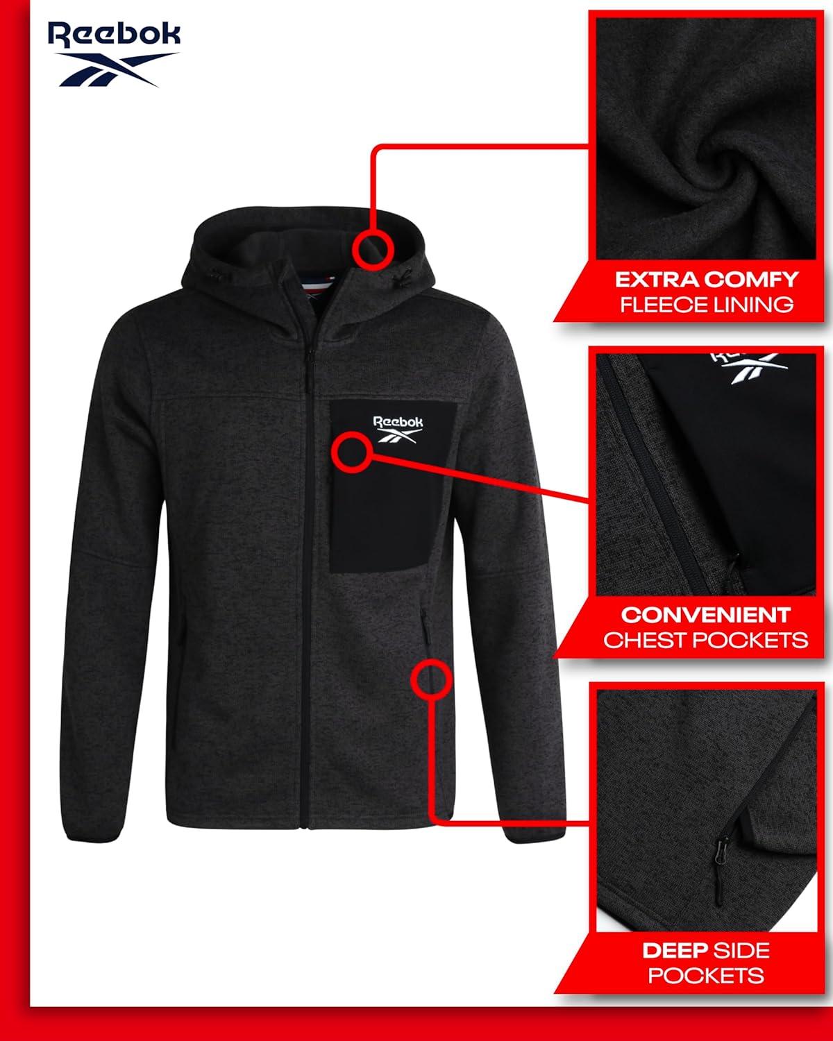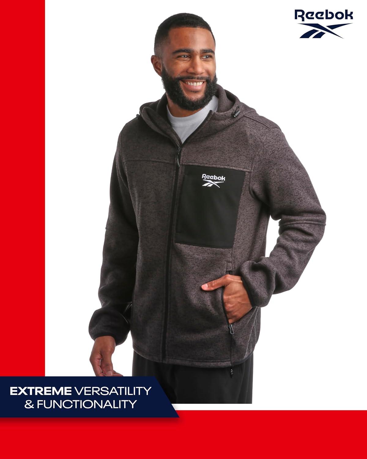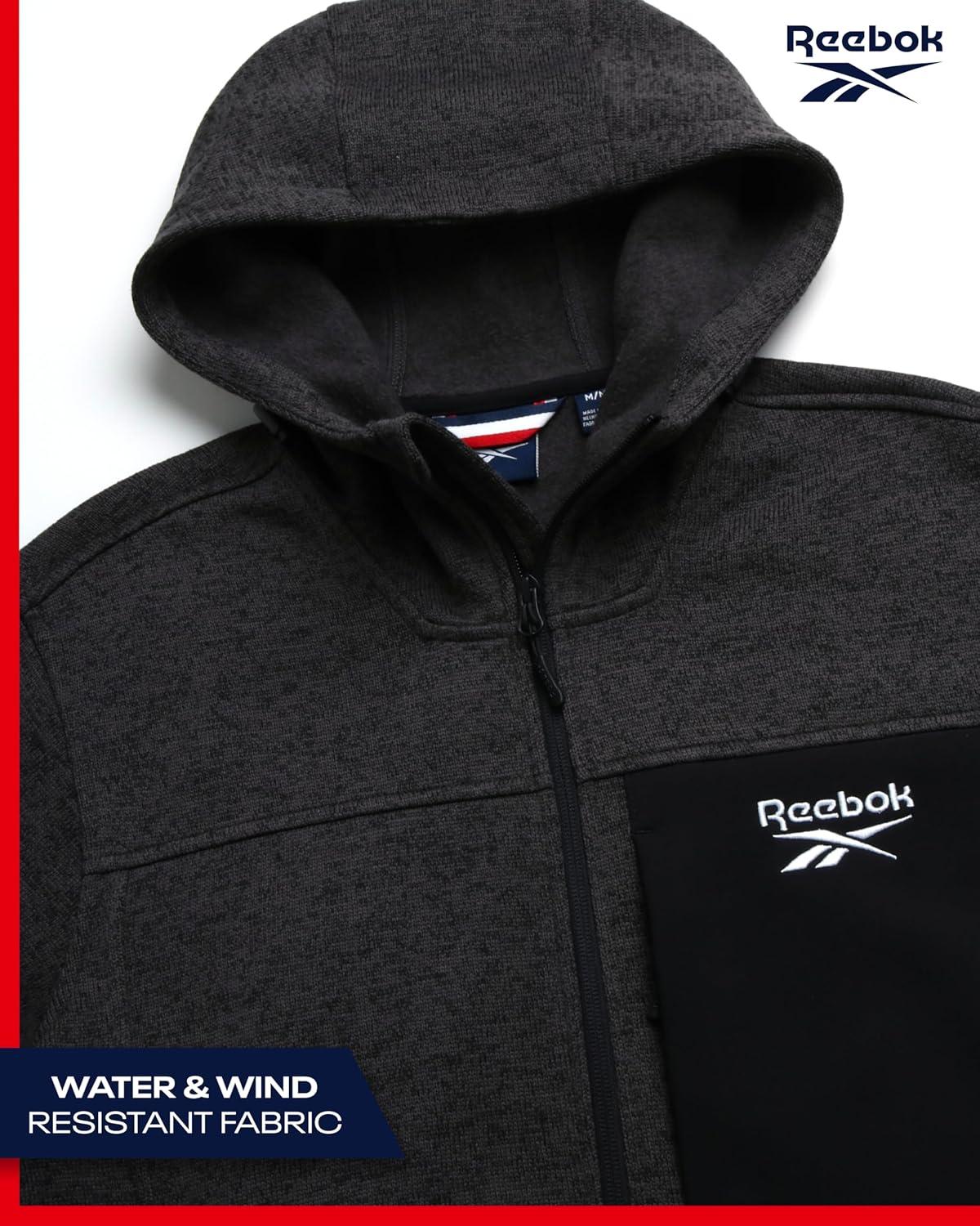 Reebok Men’s Sweater Jacket – Fleece Lined Weather Resistant Insulated Outerwear – Cozy Sweater Jackets for Men (Sizes:M-XXL)(Charcoal Heather)
