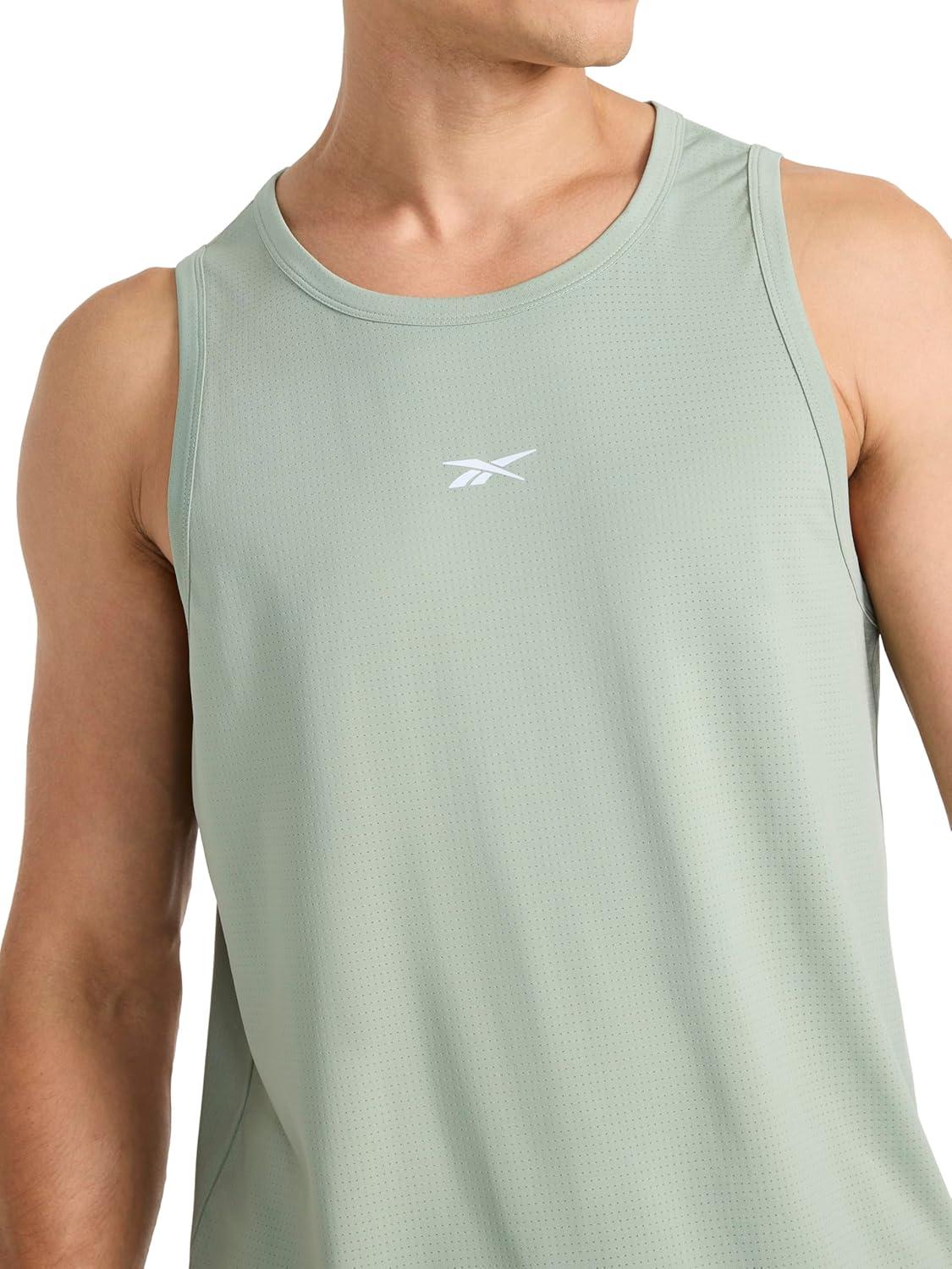 Go the distance in the Reebok Men’s Triathlon Scoop Neck Tank Top. Built from a soft jersey, this lightweight design blends breathable cotton with durable polyester for all-day comfort. A silver reflective center chest logo keeps the look sharp while the standard fit and scoop neckline deliver a streamlined, athletic silhouette made to move with you.