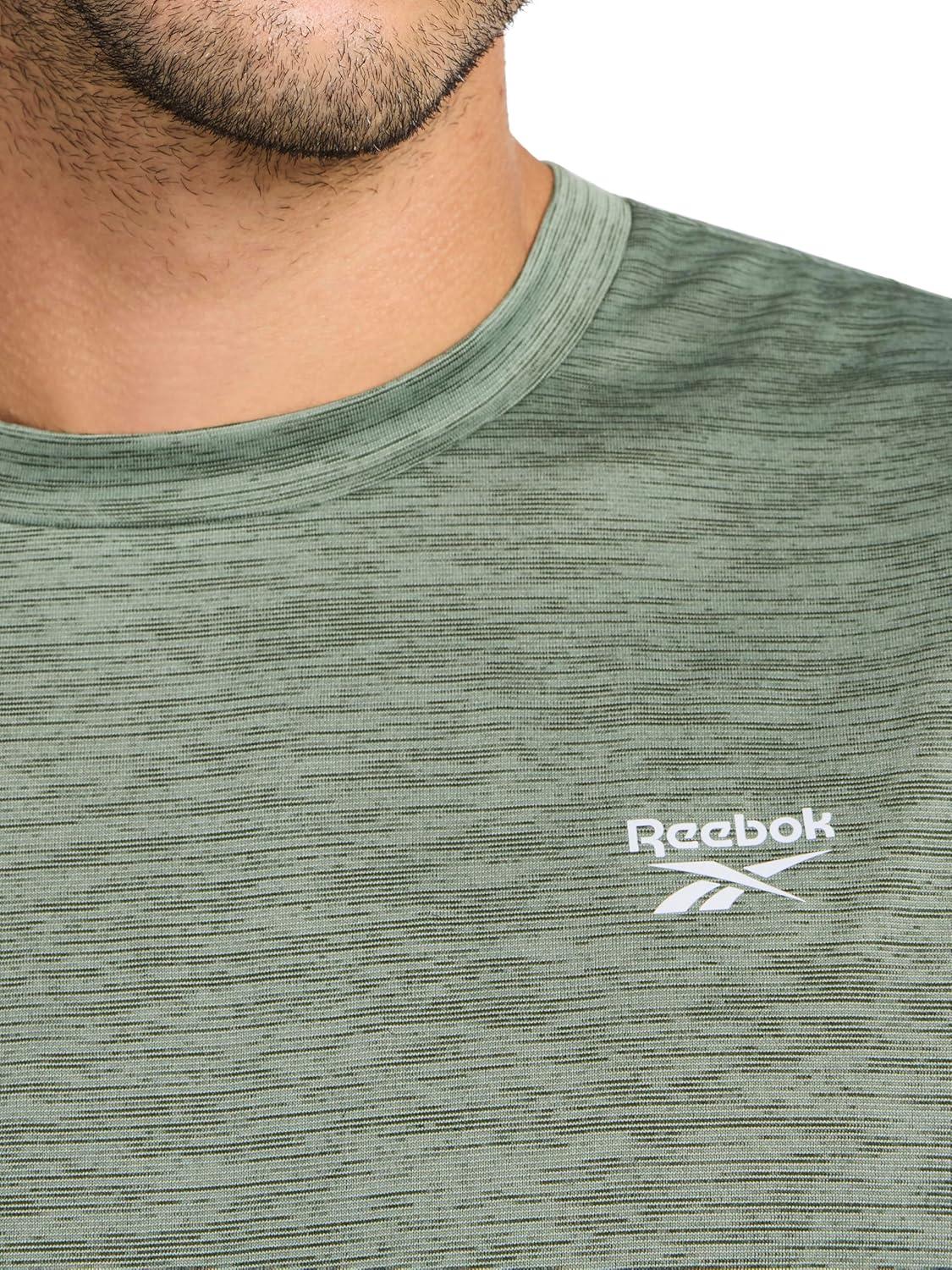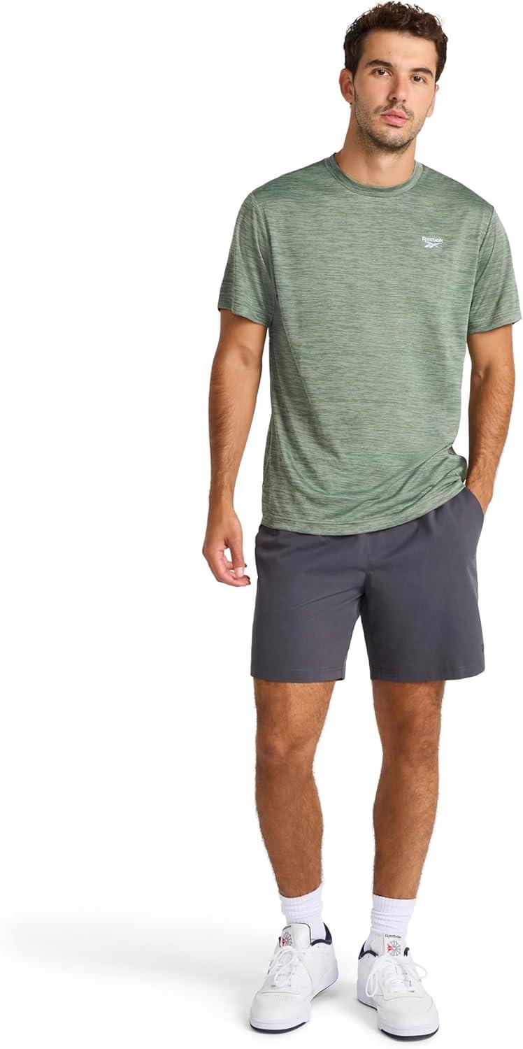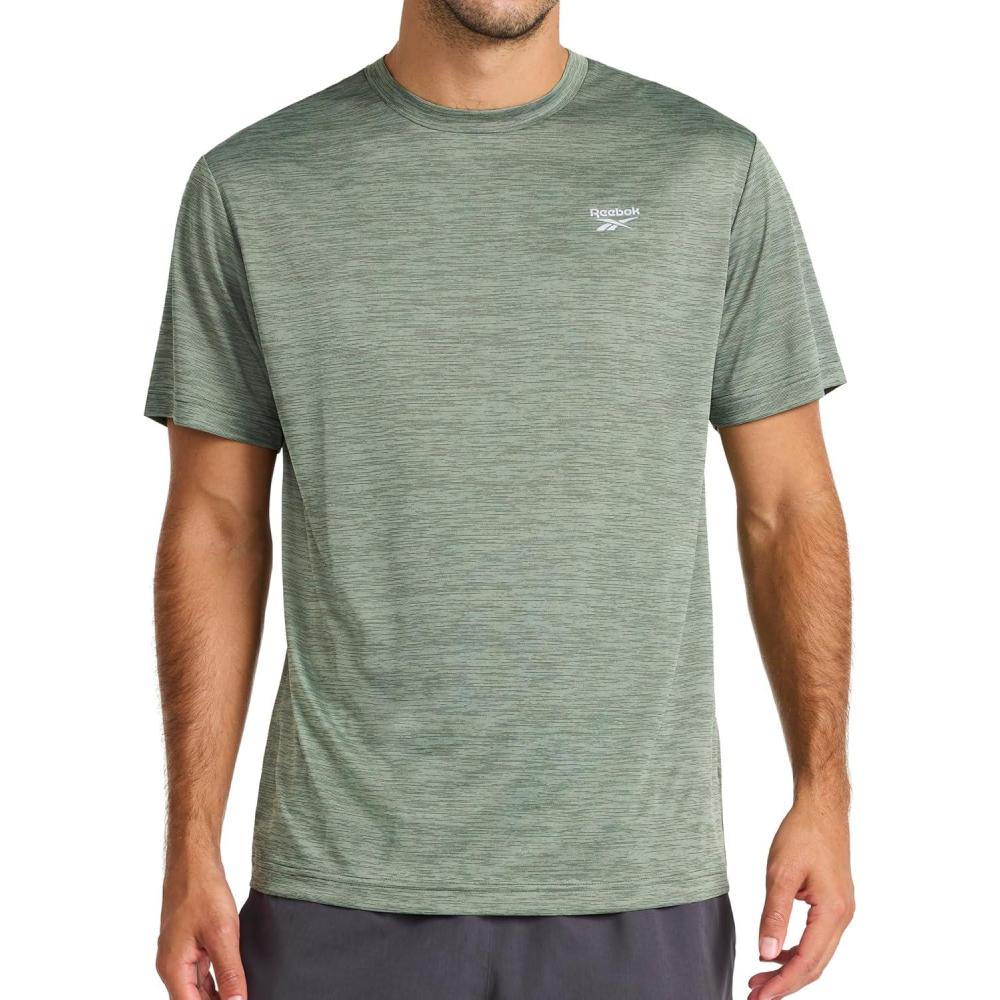 Reebok Mens Trophy Short Sleeve Crewneck T-Shirt, Standard Fit, Breathable Stretch Poly Jersey Knit Fabric(Grit Green Heather)