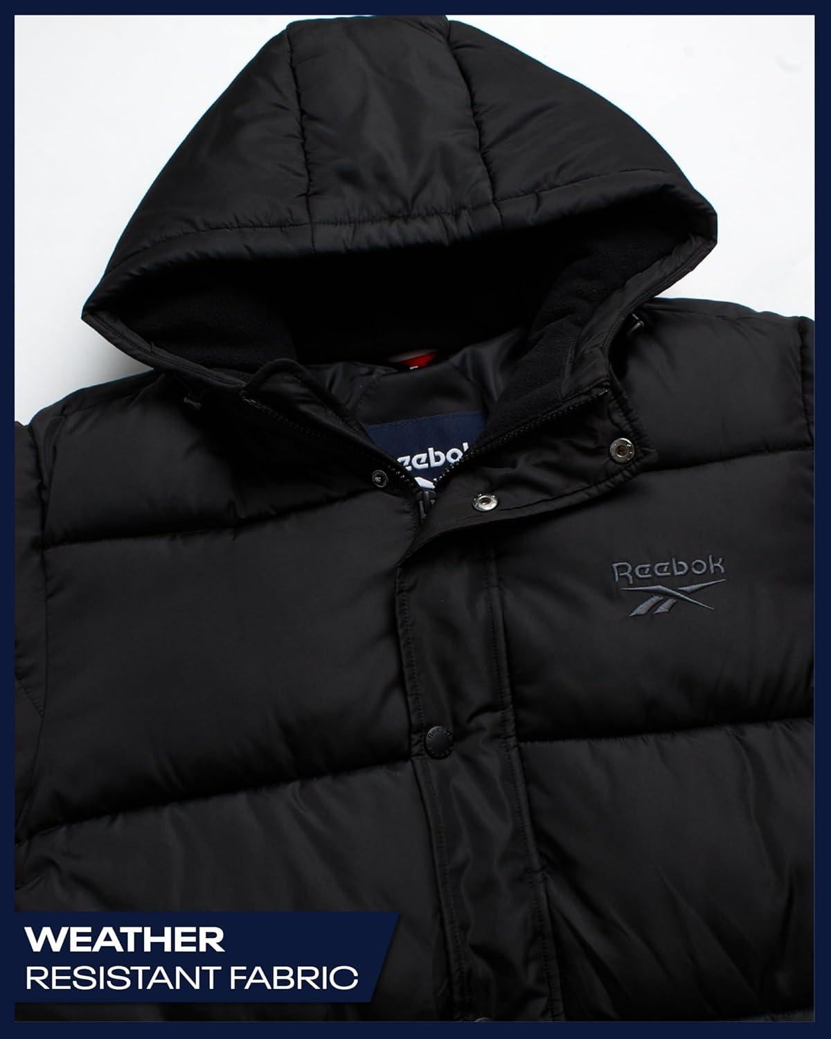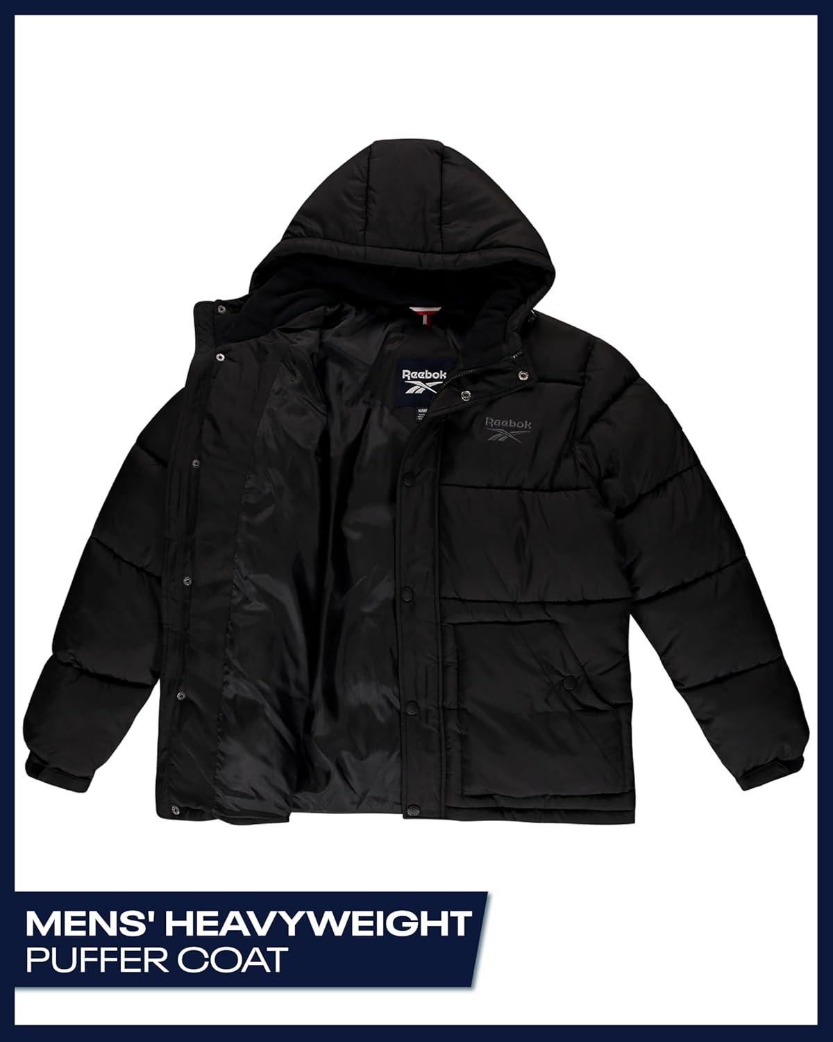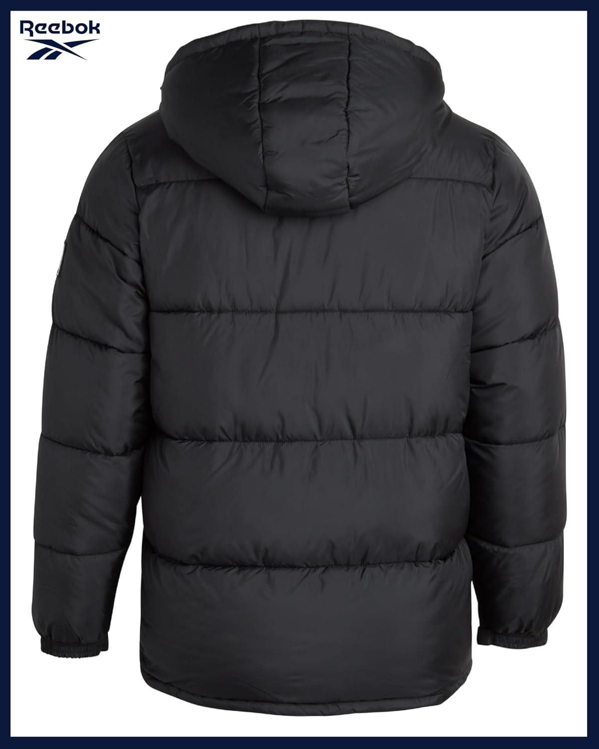 Reebok Mens Winter Jacket – Heavyweight Insulated Mens Winter Coat – Wind Water Resistant Quilted Puffer Jackets for Men(Black)