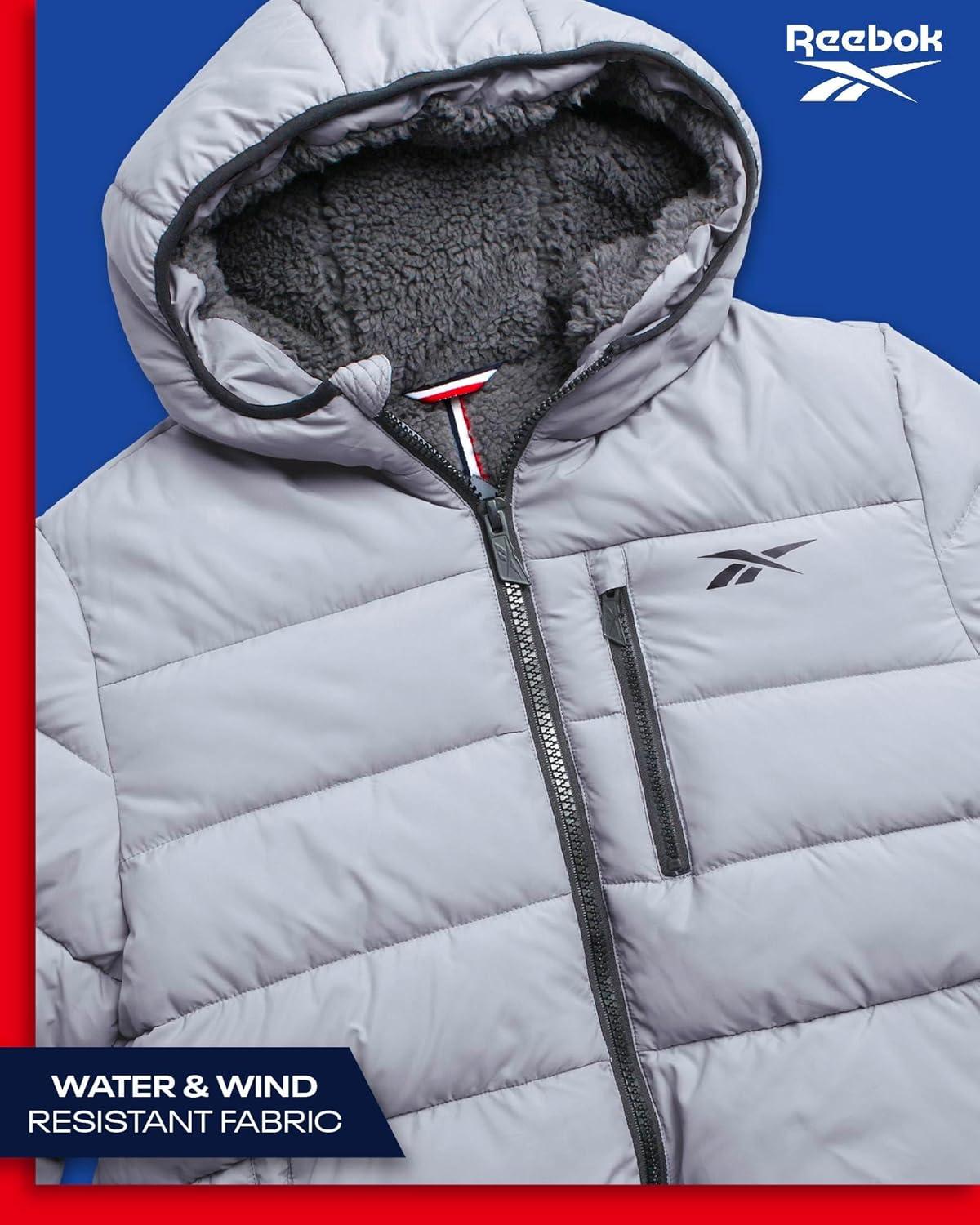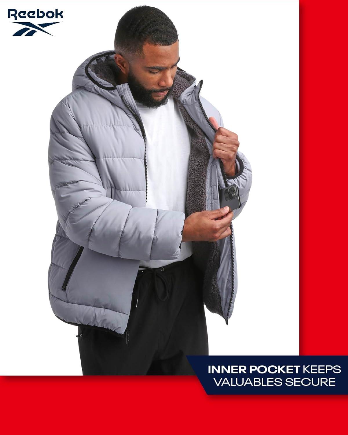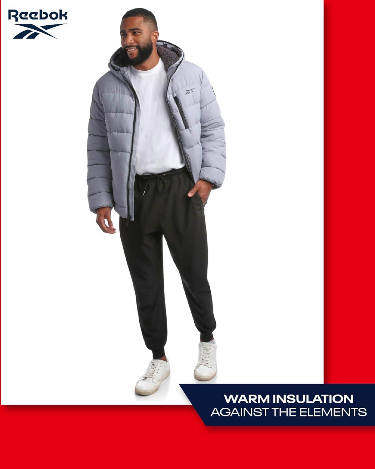 Reebok Mens Winter Jacket – Heavyweight Sherpa Lined Puffer Parka Mens Winter Coat – Insulated Quilted Ski Jacket for Men(Grey)