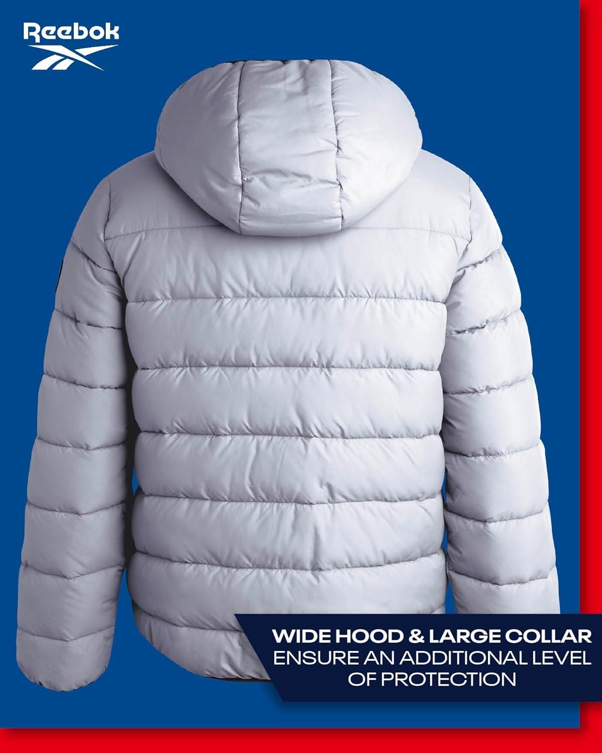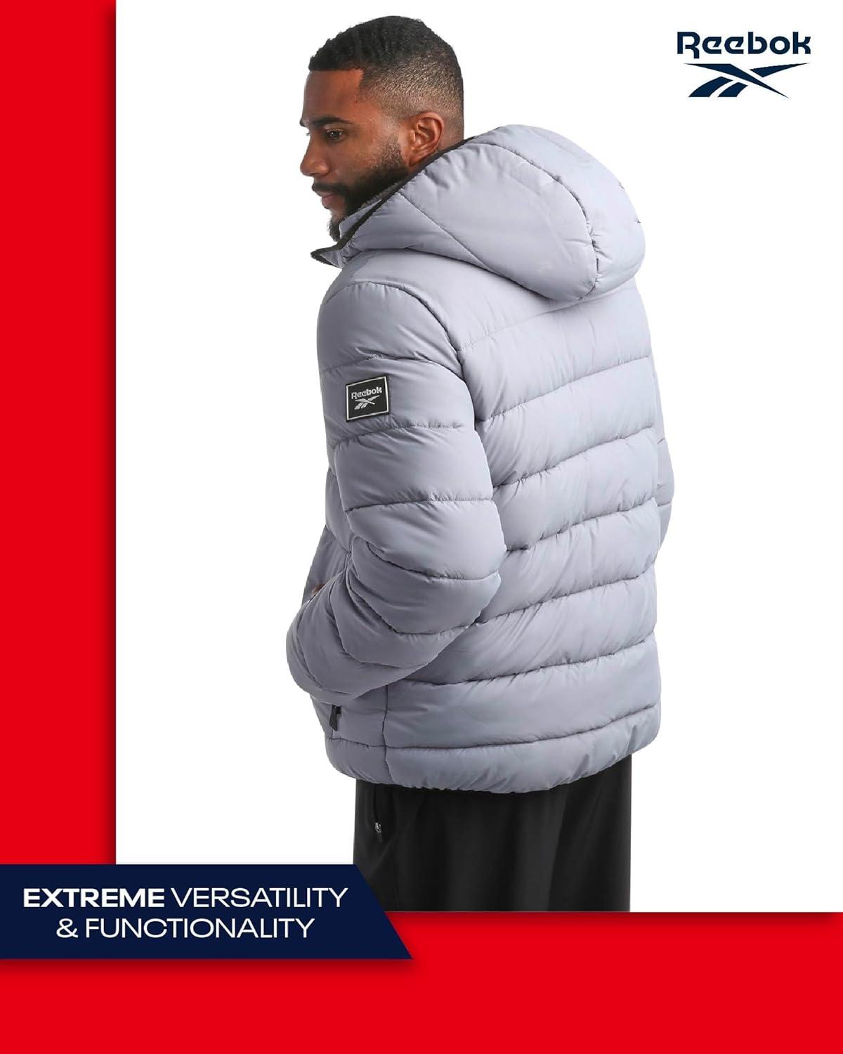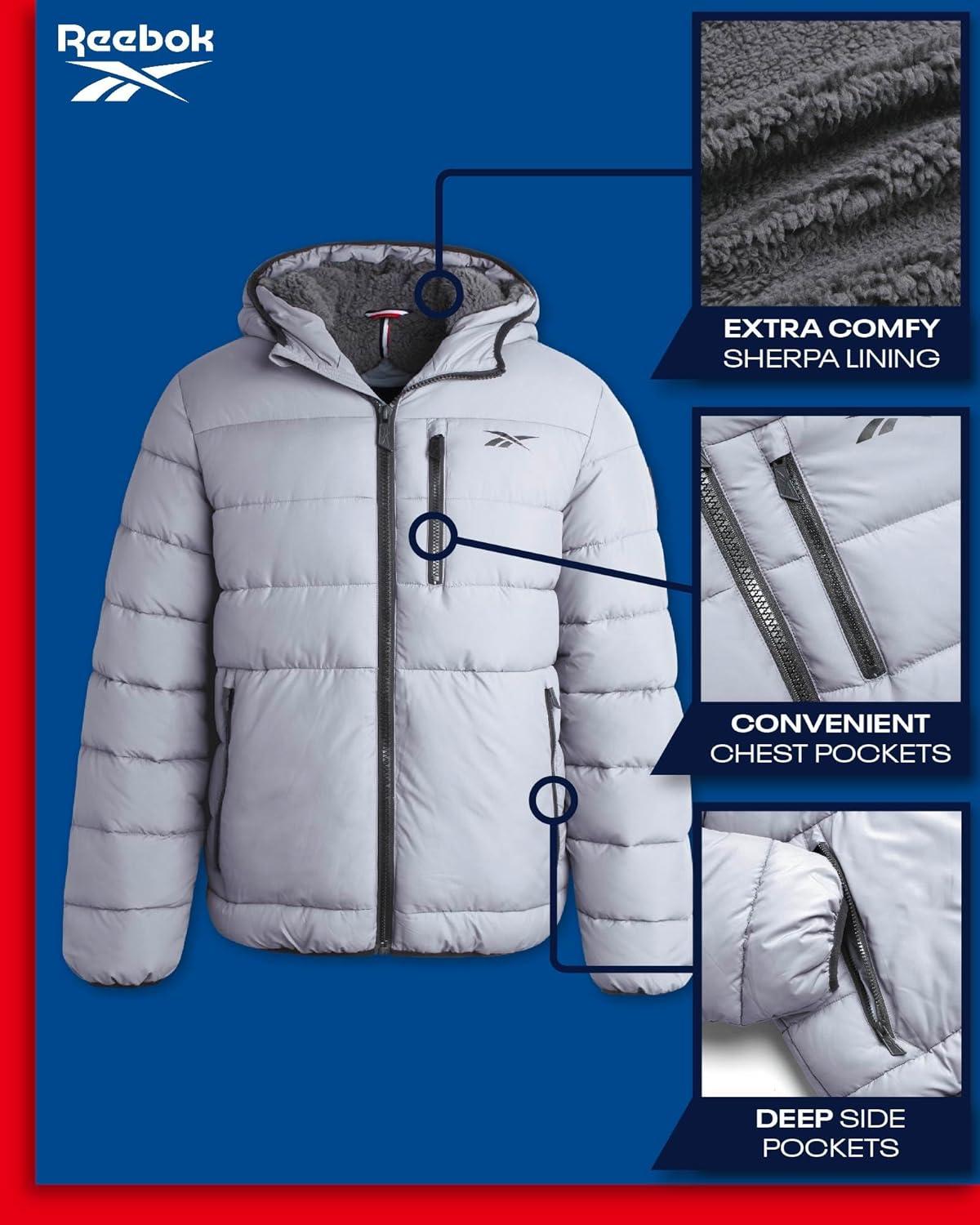 Reebok Mens Winter Jacket – Heavyweight Sherpa Lined Puffer Parka Mens Winter Coat – Insulated Quilted Ski Jacket for Men(Grey)