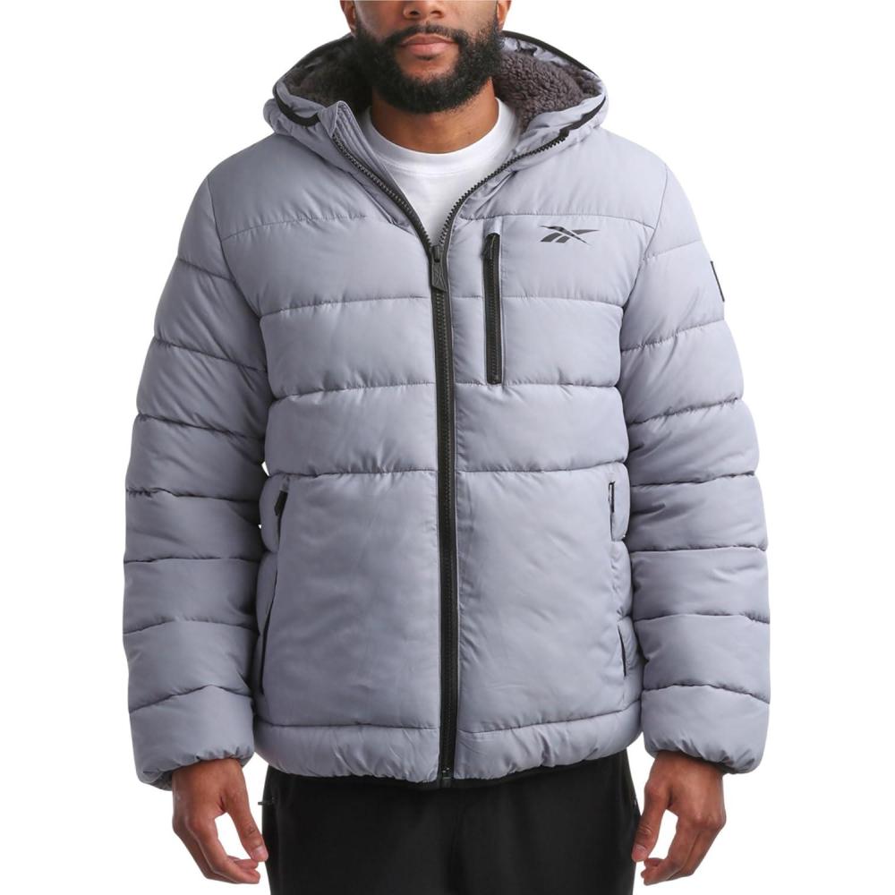 Reebok Mens Winter Jacket - Heavyweight Sherpa Lined Puffer Parka Mens Winter Coat - Insulated Quilted Ski Jacket for Men(Grey)