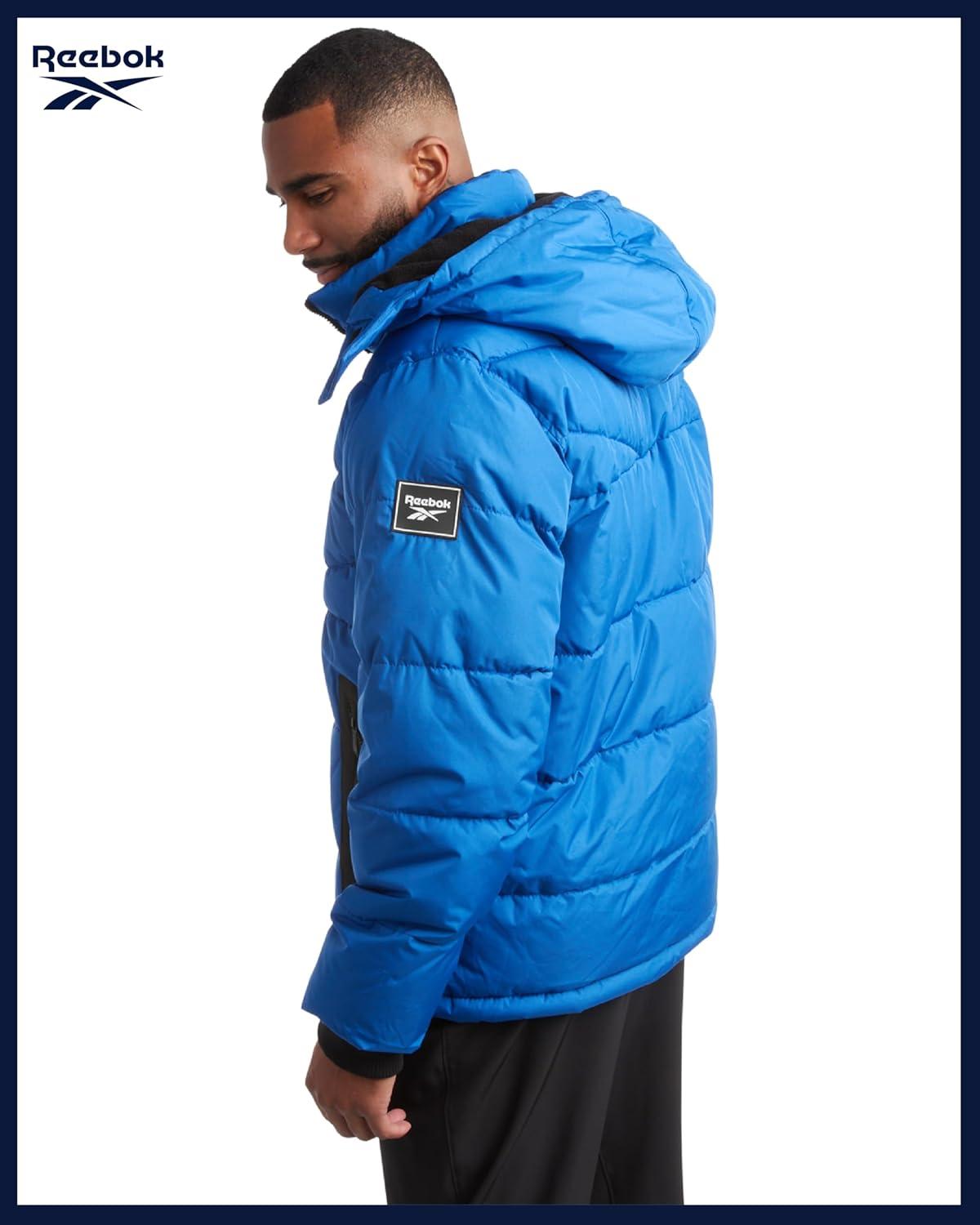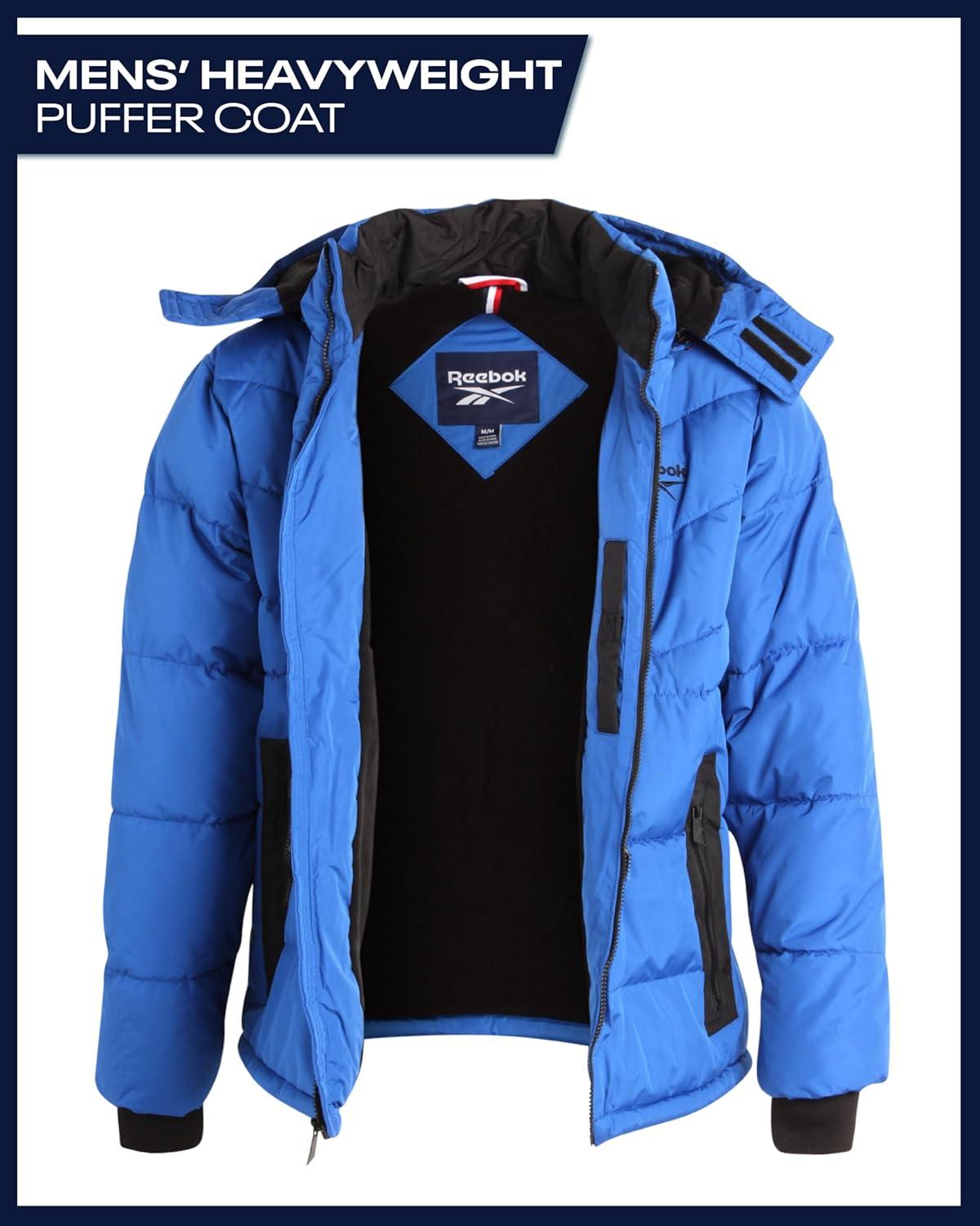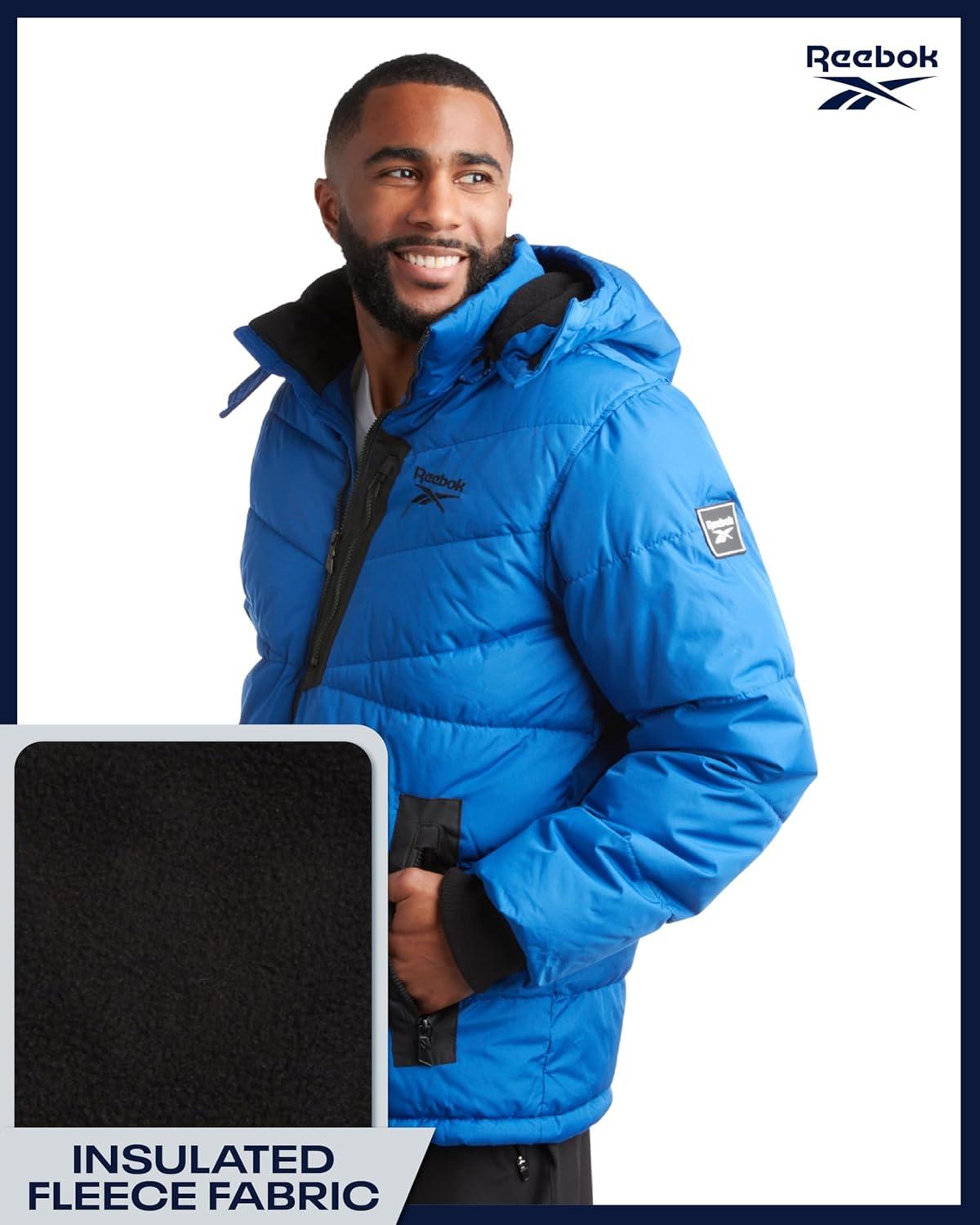 Reebok Mens Winter Jacket – Thick Heavyweight Ski Winter Coat – Warm Insulated Quilted Hooded Puffer Coat for Men(Batik Blue)
