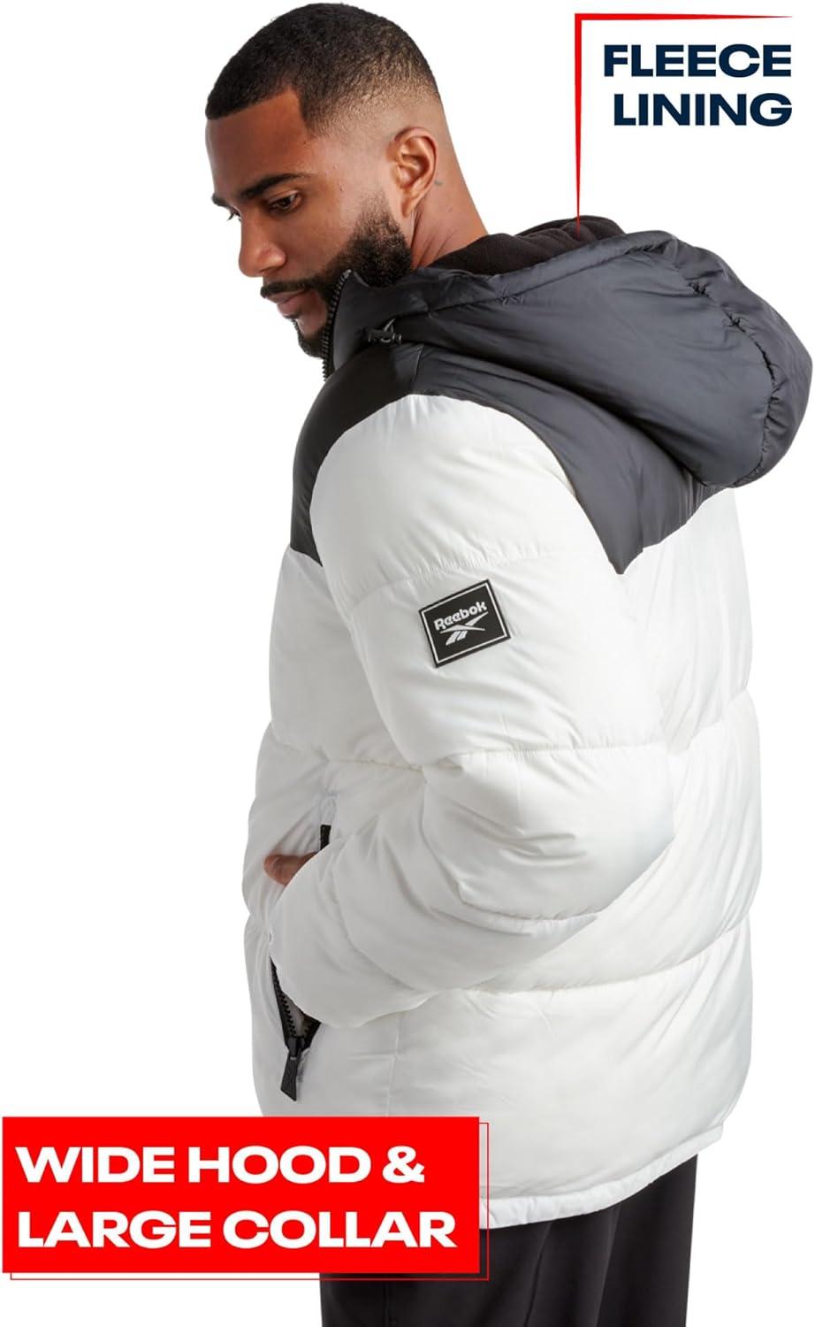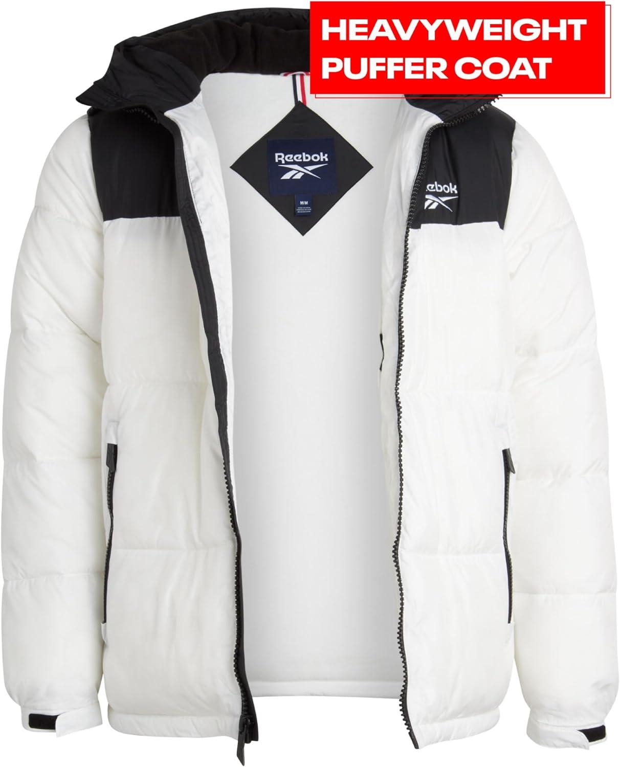 Reebok Mens Winter Jacket – Warm Heavyweight Mens Winter Coat – Wind Water Resistant Insulated Quilted Puffer Jackets for Men(White)