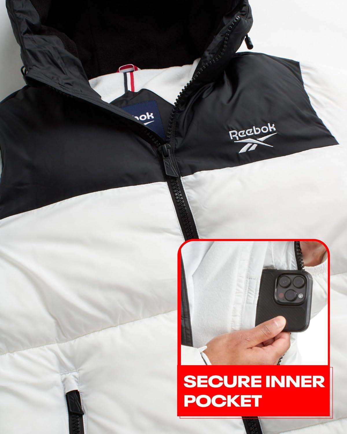 Reebok Mens Winter Jacket – Warm Heavyweight Mens Winter Coat – Wind Water Resistant Insulated Quilted Puffer Jackets for Men(Black)