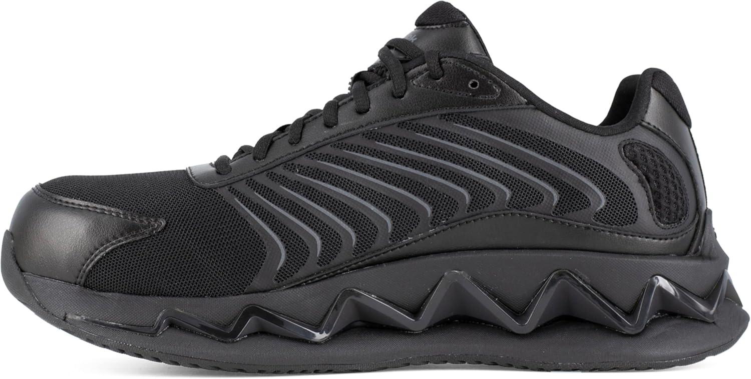Hustle through the Bustle with the bold Zig Elusion Heritage work series. A spirit of experimentation inspires these heritage work sneakers. Jagged lines of bold color give the zigzag midsole a fierce look. An airy mesh upper keeps you comfortable when you turn up the heat on the job. The springy, responsive cushioning propels you forward for a comfortable feel. Footwear Type: Low Cut Work Sneaker Toe Type: Composite Upper Material: Mesh and Microfiber Color: Black Lining: Moisture Wicking Nylon Mesh Insole: MemoryTech Removable Cushion Footbed Outsole: Zig Energy Band Midsole with Slip Resistant Rubber Bottom Special Features: 100% Non-Metallic, Extra Wide Toe, Zig Energy Band Features: ASTM F2413, Composite Toe, XTR® Brand Composite Toe, Static Dissipative (SD10), SR-ASTM F3445, Metal Free – Full foot Zig Energy Plate sandwiched between two foam pieces helps promote energy return – Innovative Zig Energy outsole stretches and snaps back to help return energy with each step – Airy Mesh and Microfiber upper for ultimate breathability and freedom of movement – MemoryTech Memory Foam Cushion Footbed adds extra shock absorption and cushion – Slip Resistant bottom meets or exceeds ASTM F3445 standard – XTR® brand extra wide composite toe reduces weight while maintaining impact and compression protection (meets or exceeds ASTM F2413)