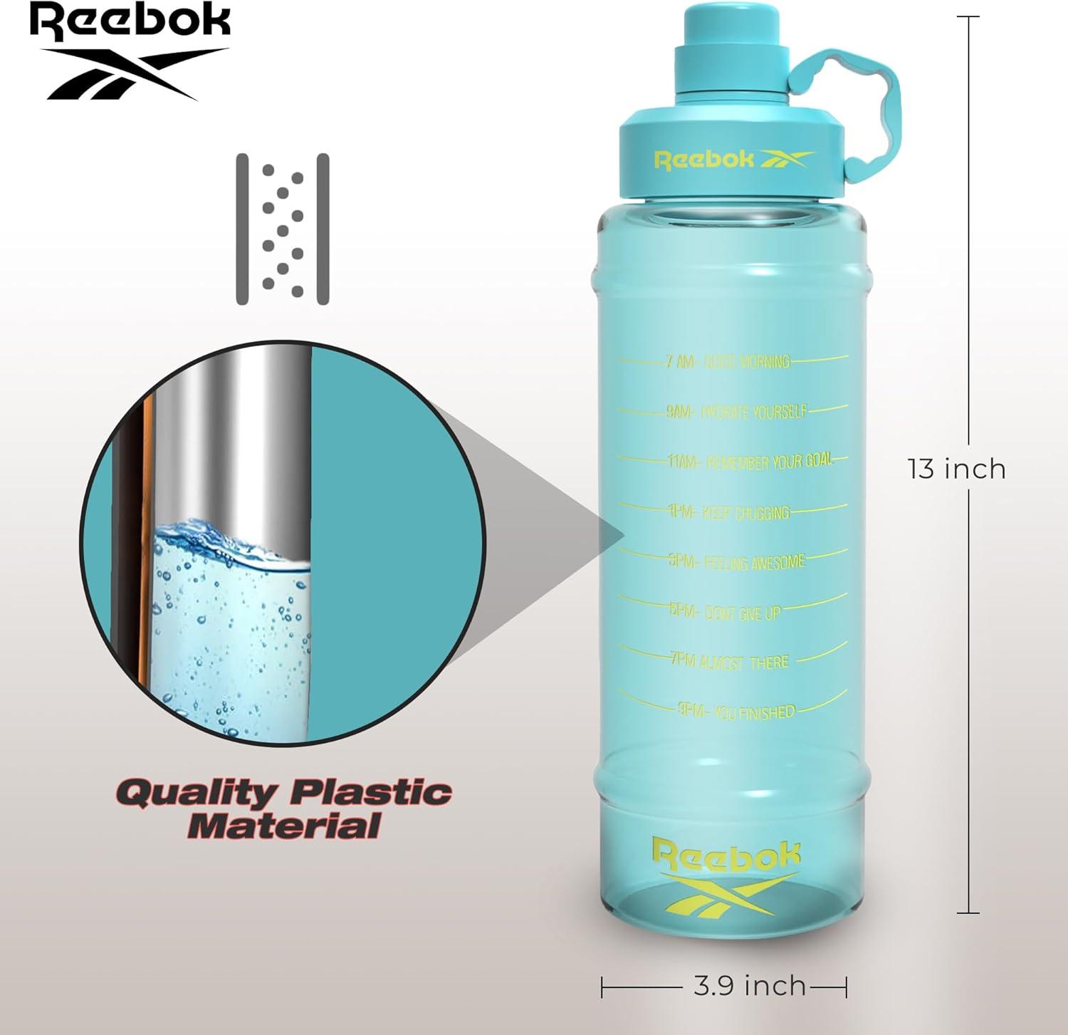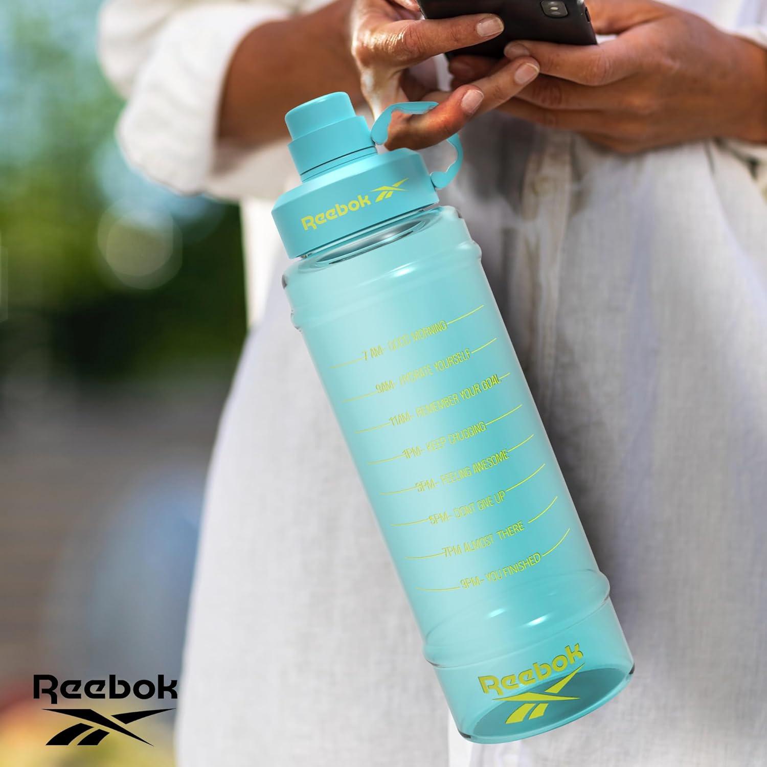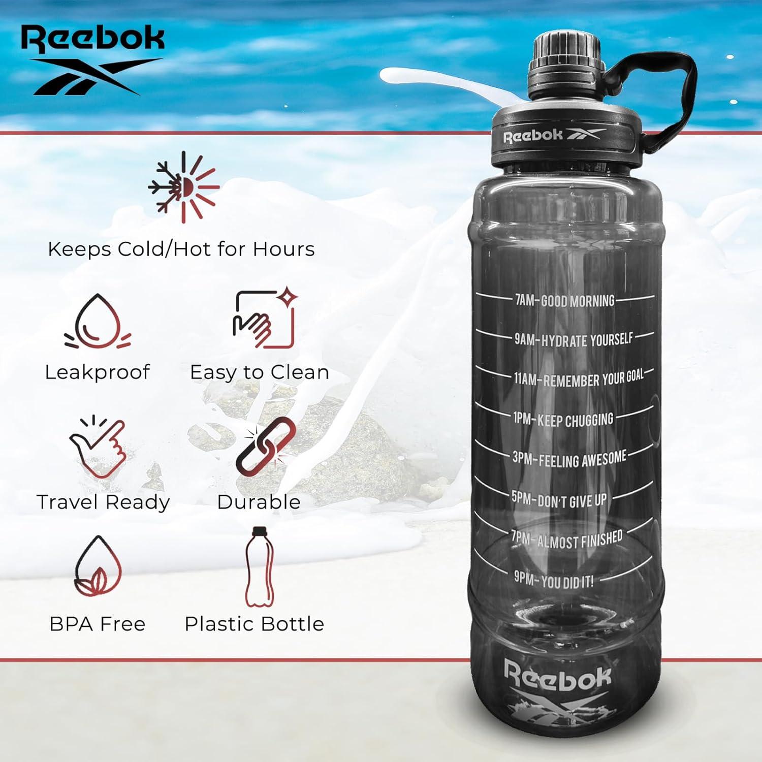MOTIVATIONAL WATER BOTTLE: Stay hydrated and motivated with our inspirational water bottle.The leak-proof lid and durable construction make it perfect for everyday use and fitness activities. Quench your thirst and stay inspired with our Reebok motivational water bottle.