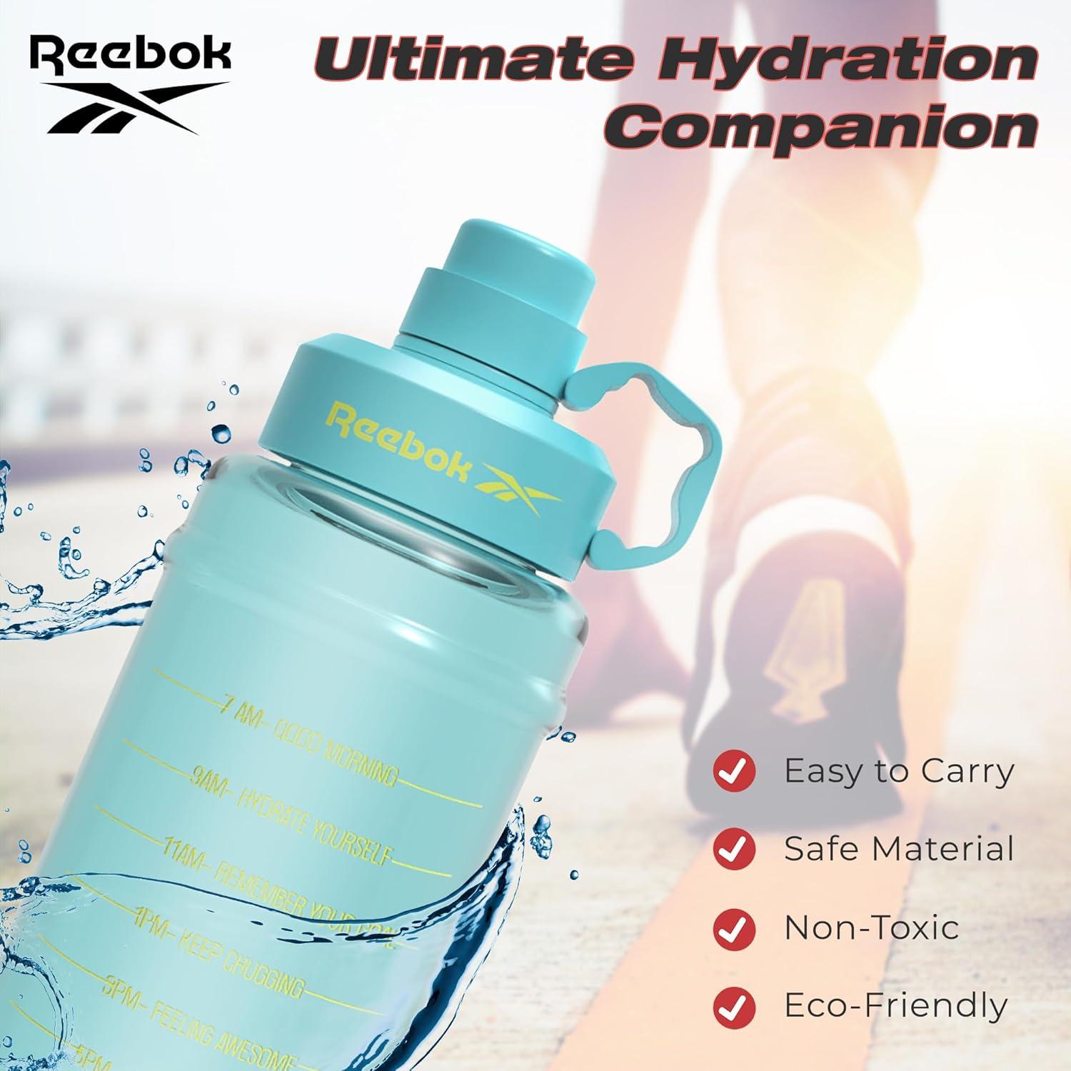 TRAVEL WATER BOTTLE BPA FREE: The Reebok Plastic water bottle is the perfect travel companion, featuring a BPA-free construction. This bottle is ideal for taking on your travels, ensuring that you have a safe and reliable hydration option wherever your adventures take you.