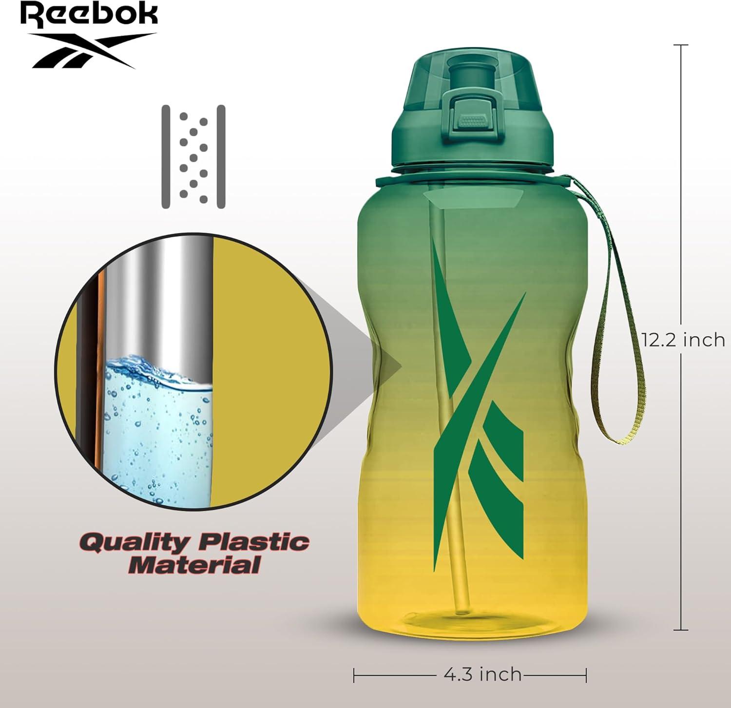 Durable Plastic Hydration Companion: Stay hydrated on-the-go with Reebok's BPA-free 64 oz plastic water bottle, built to endure workouts and outdoor escapades with its leak-proof design.