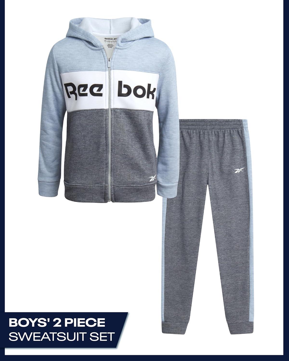 Reebok Toddler Boys Tracksuit – 2 Piece Cozy Soft Fleece Toddler Zip Up Hoodie Sweatshirt and Boys Jogger Pants Outfit(Light Grey Heather)