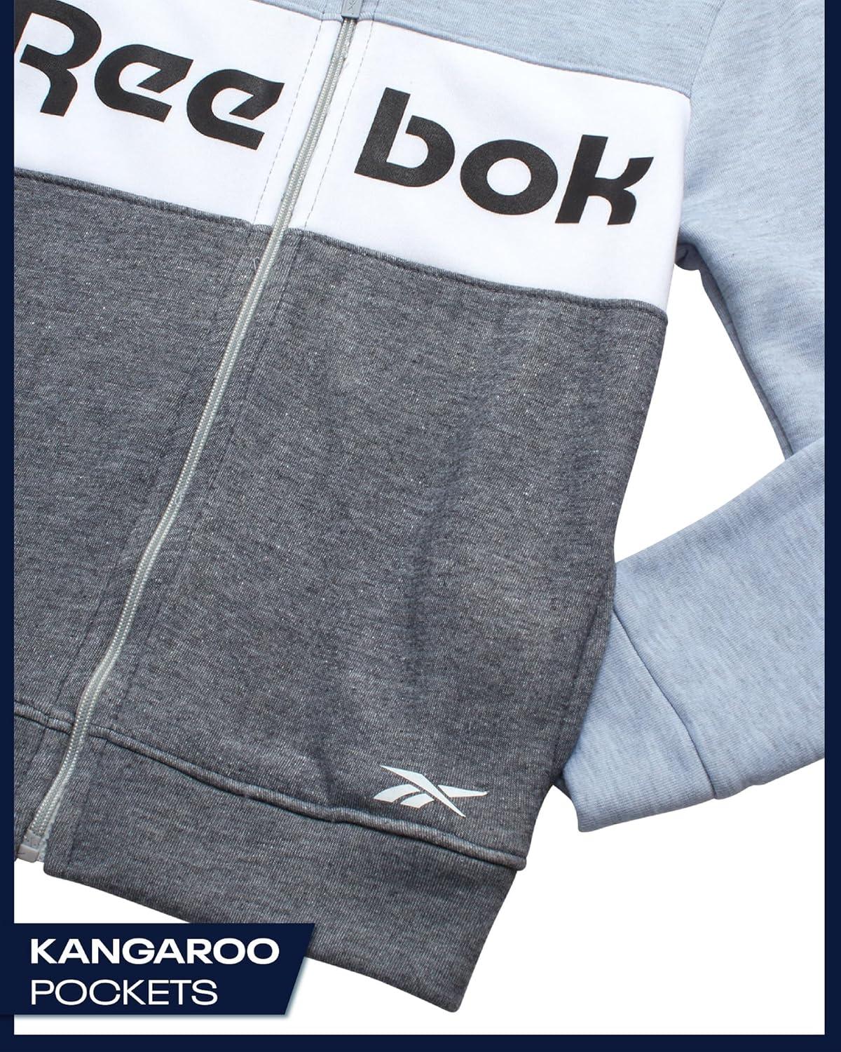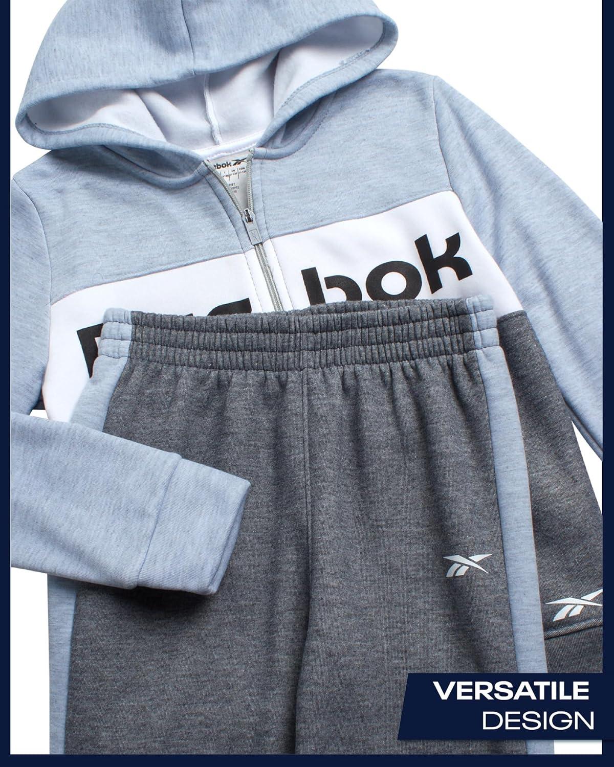 Reebok Toddler Boys Tracksuit – 2 Piece Cozy Soft Fleece Toddler Zip Up Hoodie Sweatshirt and Boys Jogger Pants Outfit(Dark Grey Heather)