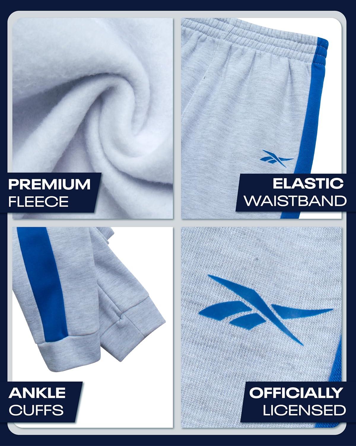 Reebok Toddler Boys Tracksuit - 2 Piece Cozy Soft Fleece Toddler Zip Up Hoodie Sweatshirt and Boys Jogger Pants Outfit(Light Grey Heather)