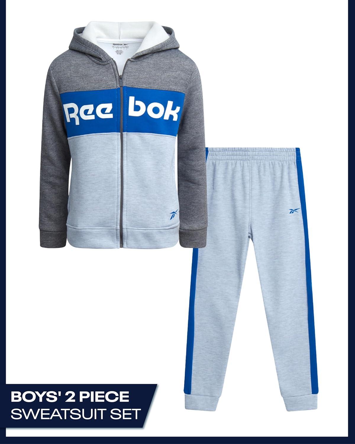 Reebok Toddler Boys Tracksuit – 2 Piece Cozy Soft Fleece Toddler Zip Up Hoodie Sweatshirt and Boys Jogger Pants Outfit(Light Grey Heather)