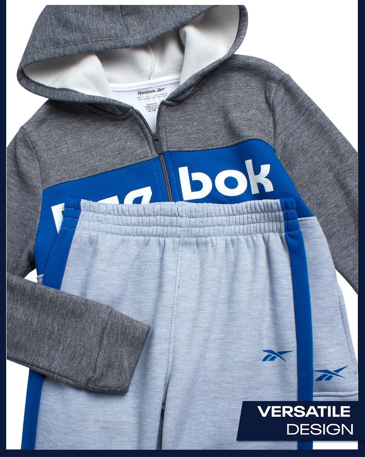Reebok Toddler Boys Tracksuit – 2 Piece Cozy Soft Fleece Toddler Zip Up Hoodie Sweatshirt and Boys Jogger Pants Outfit(Dark Grey Heather)
