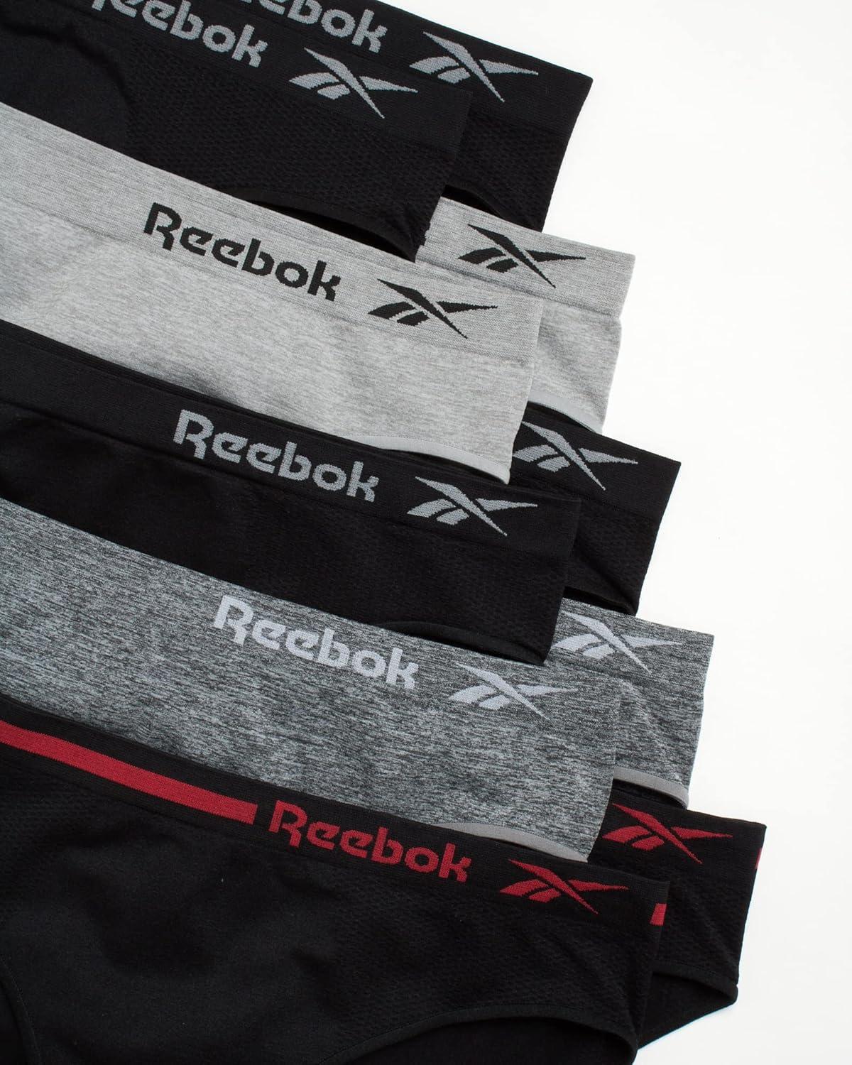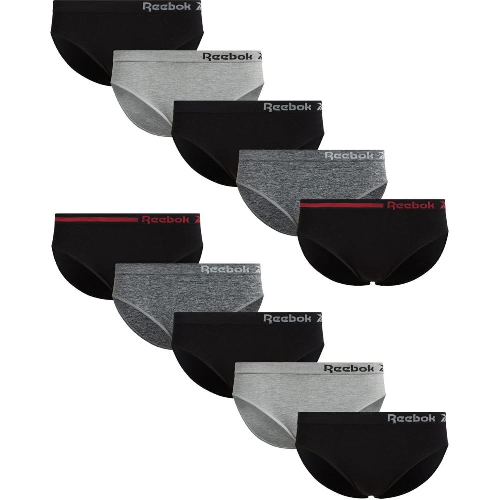 Reebok Womens Bikini Underwear – 10 Pack Stretch Performance Briefs Bikini Panties – Seamless Underwear for Women (Size S-XL)(Black/Charcoal/Black/Light Grey/Black)