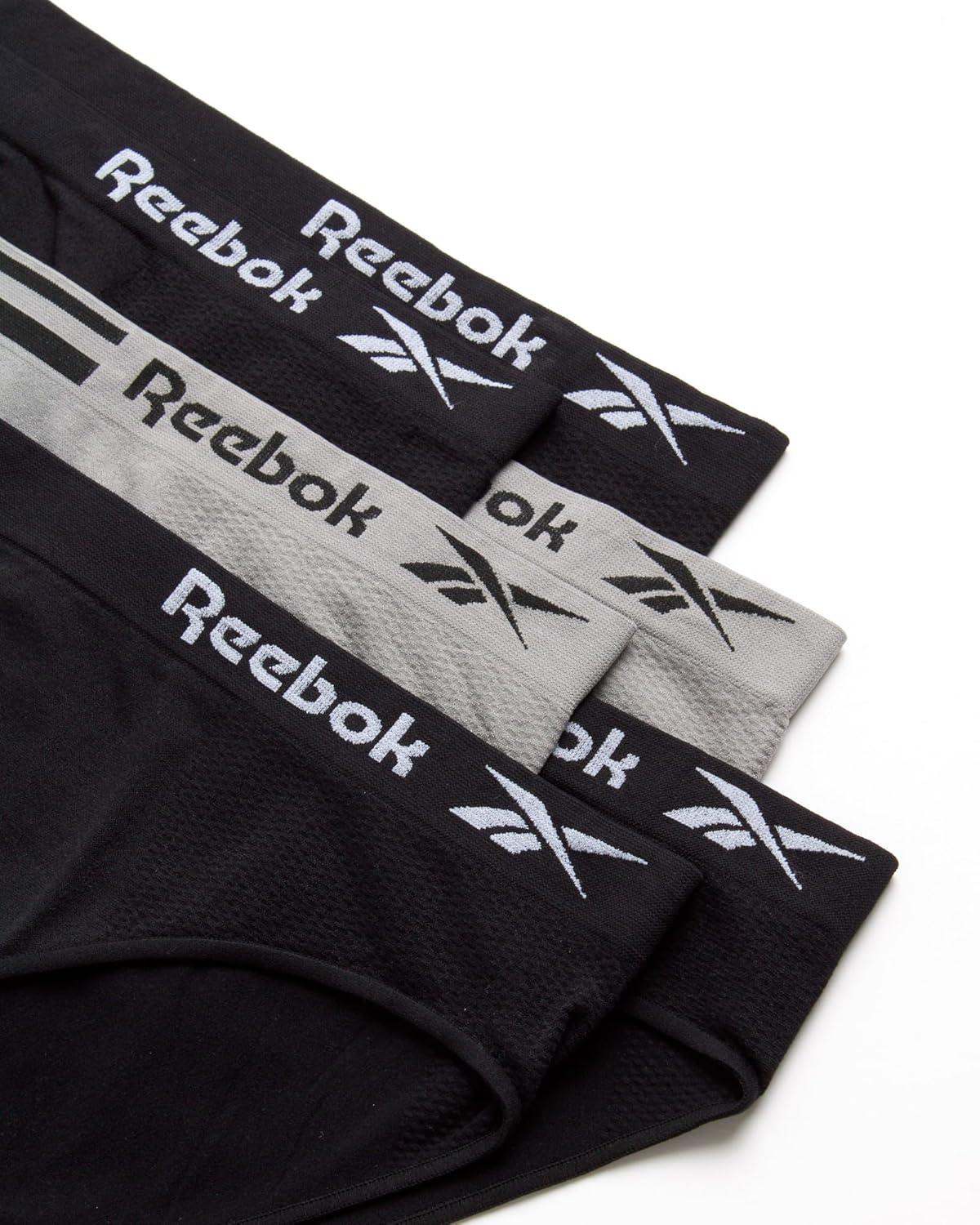Reebok Women's Bikinis - 6 Pack Microfiber Seamless Womens Bikini Panties - Breathable Underwear for Women (S-XL)(Black/Sharkskin/Black)