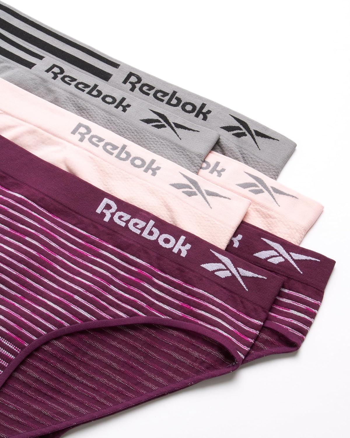 Reebok Women’s Bikinis – 6 Pack Microfiber Seamless Womens Bikini Panties – Breathable Underwear for Women (S-XL)(Minimal Lilac Grey/Soft Pink/Greystone Jacquard)