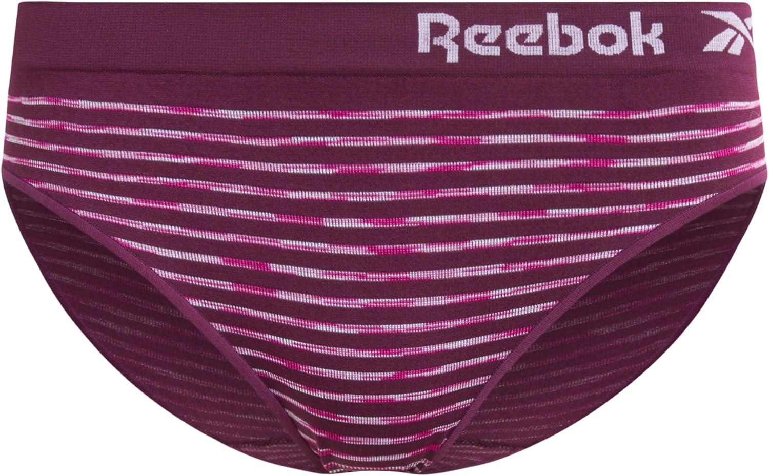 Reebok Women’s Bikinis – 6 Pack Microfiber Seamless Womens Bikini Panties – Breathable Underwear for Women (S-XL)(Grapewine Spacedye/Lotus/Sharkskin)