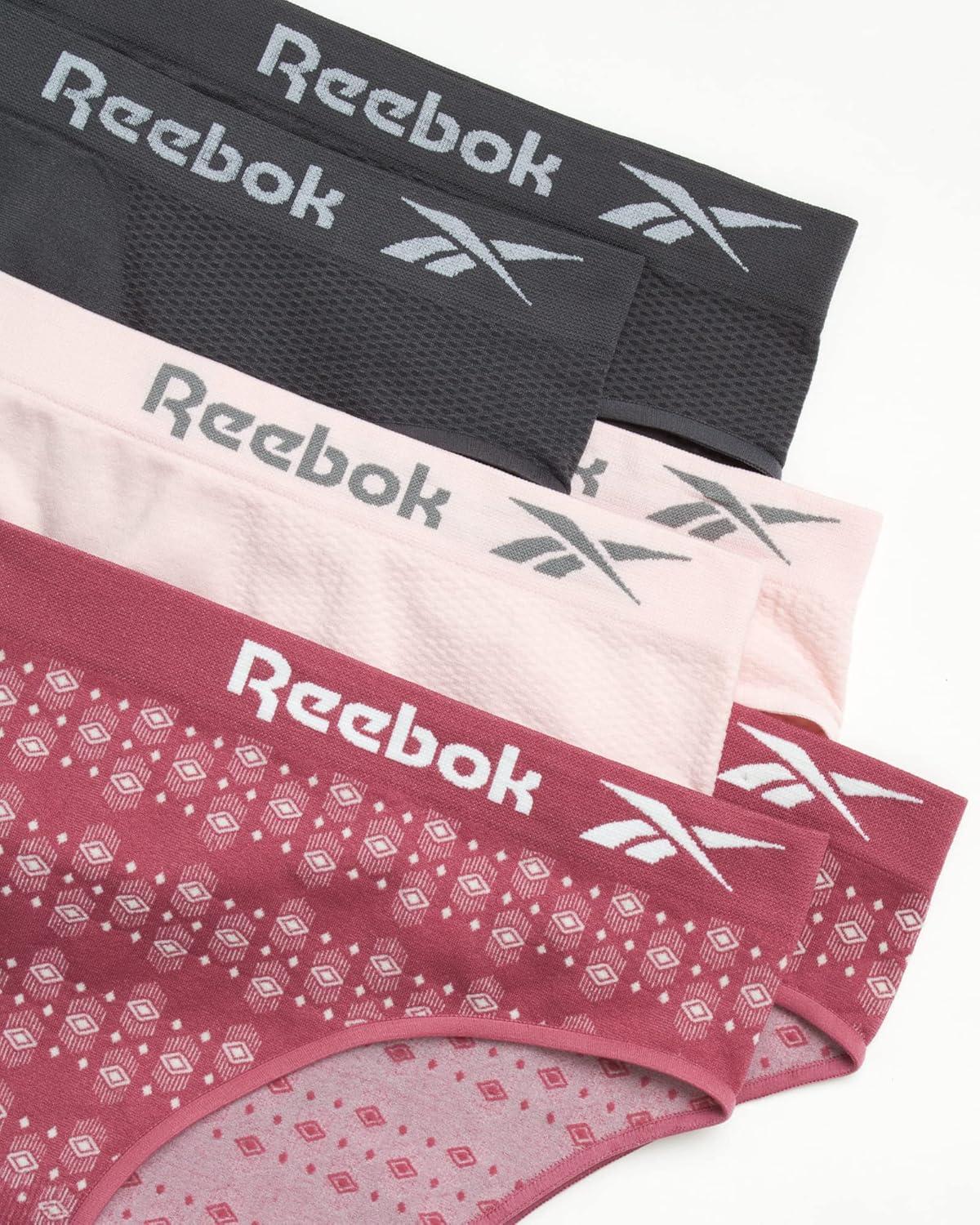 Reebok Women’s Bikinis – 6 Pack Microfiber Seamless Womens Bikini Panties – Breathable Underwear for Women (S-XL)(Jacquard/Lotus/Blackened Pearl)