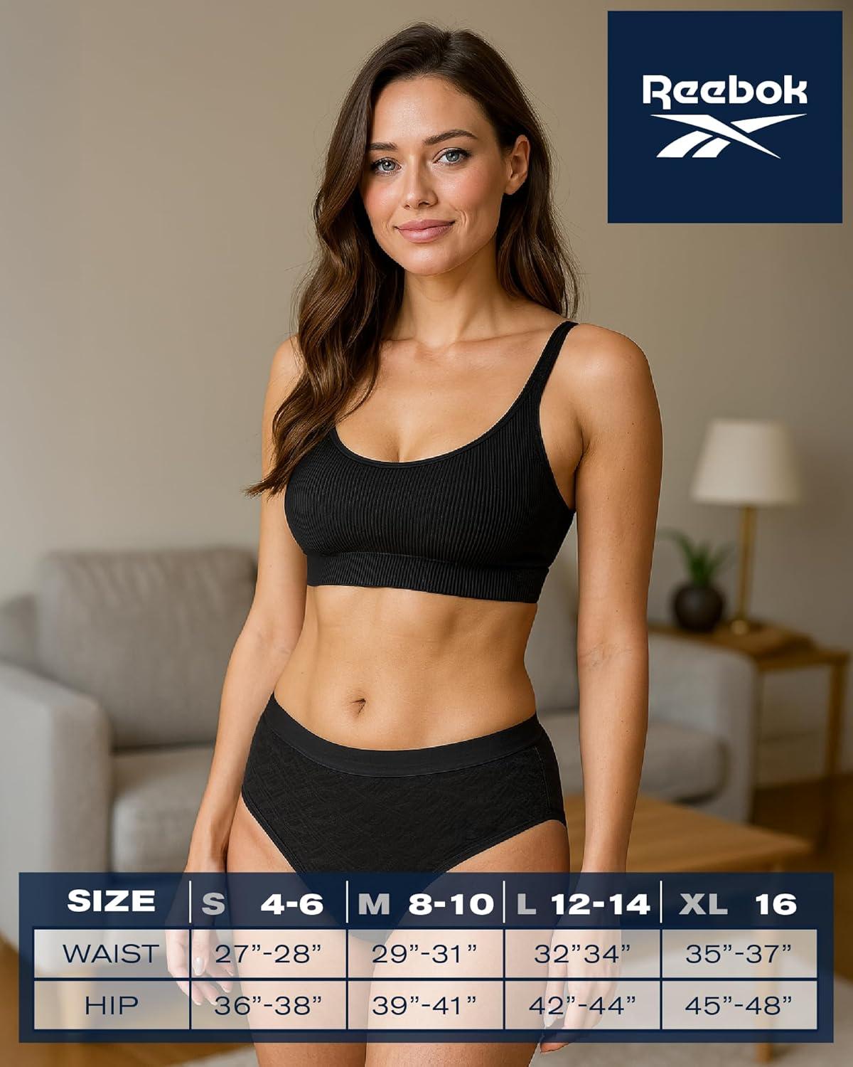 imageReebok Womens Bikinis  6 Pack Microfiber Seamless Womens Bikini Panties  Breathable Underwear for Women SXLBlackSharkskinBlack